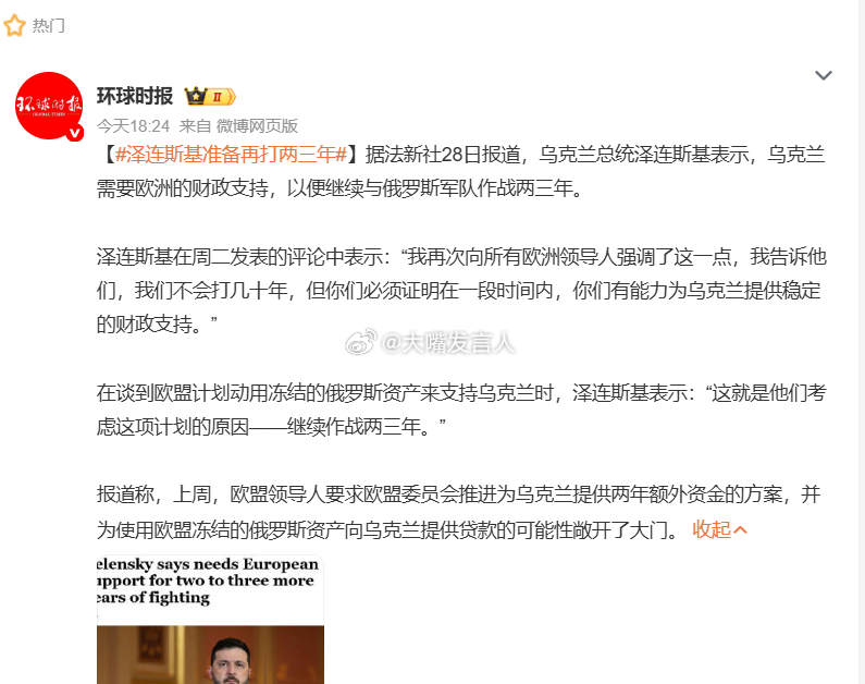 泽连斯基准备再打两三年 泽圣你最棒,值得发一枚一吨重的奖牌[哈哈][哈哈]一定要把北约军队拖在俄乌战场,谁不给钱给枪你就使劲骂他们[赞]