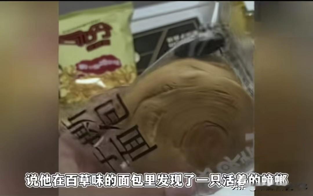 江苏南通一哥们在网上买了箱百草味面包,10月25号发现面包里有只活着的蟑螂,关键这面包是9月26号生产的,到发现时刚好一个月! 这面包没拆封,里面还充满氮气,等于几乎没氧气。就这环境,蟑螂没吃没喝没排泄,愣是活了一个月,精力还贼旺盛。 百草味工作人员想把面包要回去研究,这哥们没答应。显然对这个处理结果不满意,结果视频发出来第二天,蟑螂居然咬破包装袋“越狱”了!