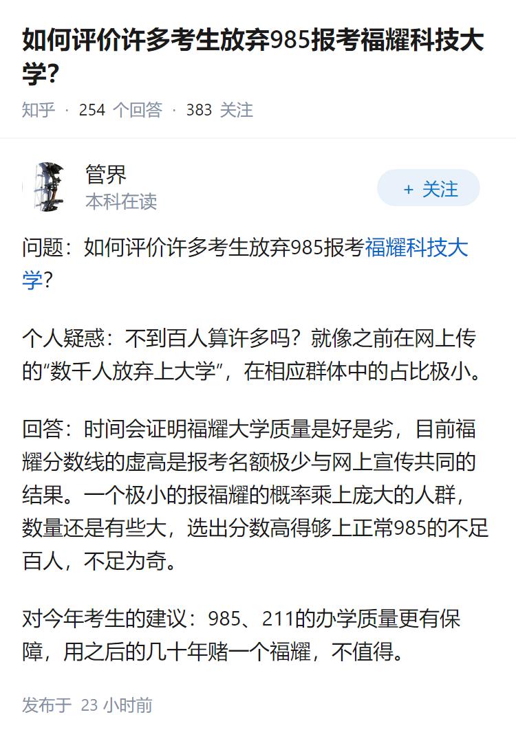 如何评价许多考生放弃985报考福耀科技大学?