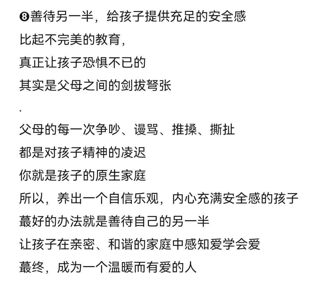 ➑善待另一半,给孩子提供充足的安全感