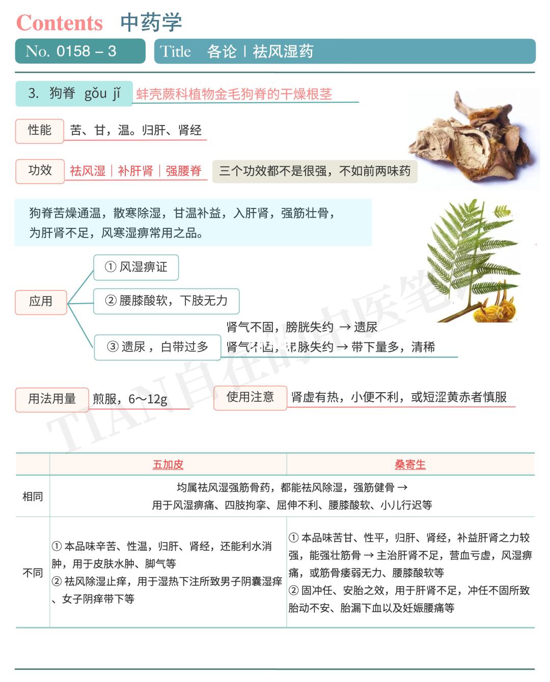 🩵药物➡️掌握(桑寄生)熟悉(五加皮)了解(狗脊)