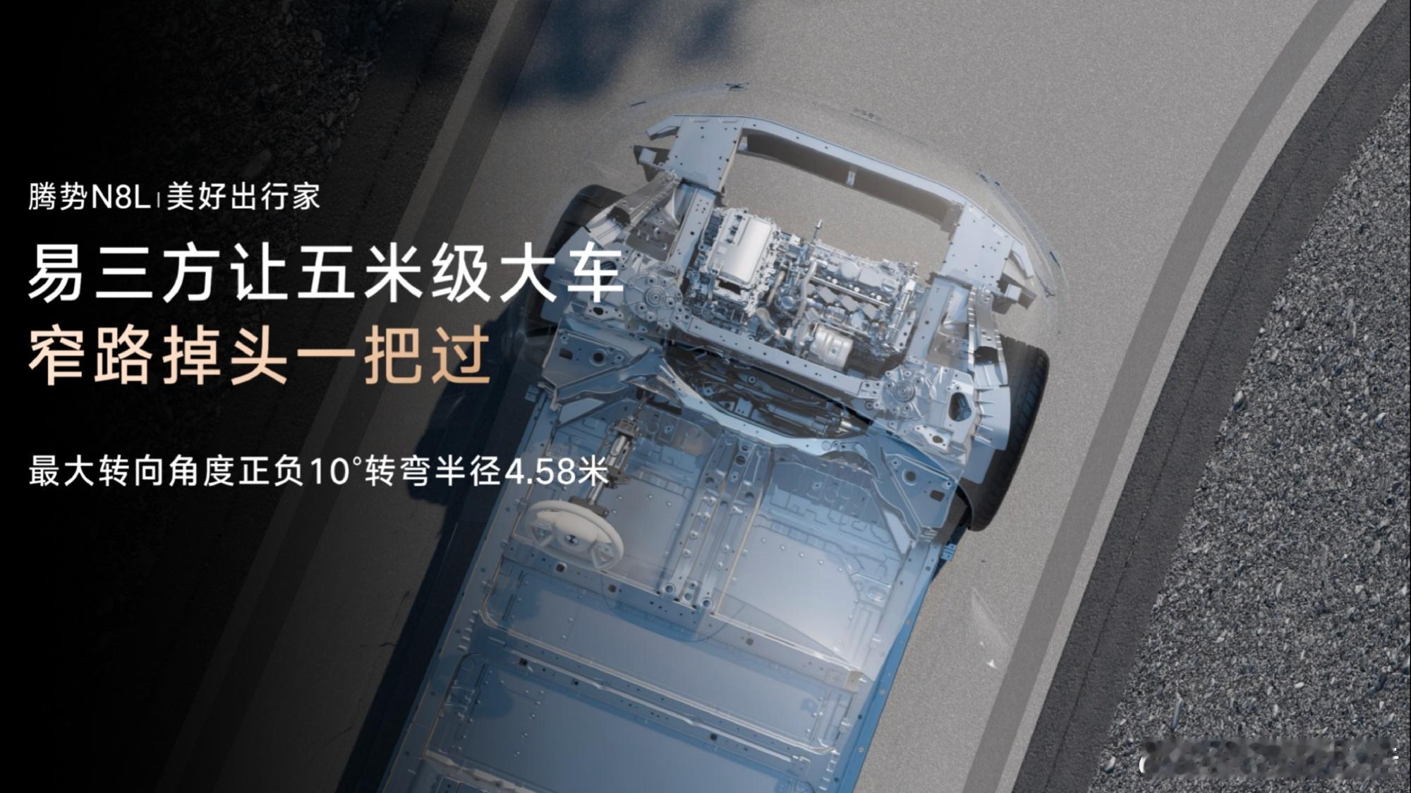 智驾方面搭载“天神之眼B”,1激光雷达,支持城市/高速领航及自动泊车。底盘为前双叉臂+后五连杆,云辇-A双腔空悬,后轮转向10°,最小转弯半径4.58m。