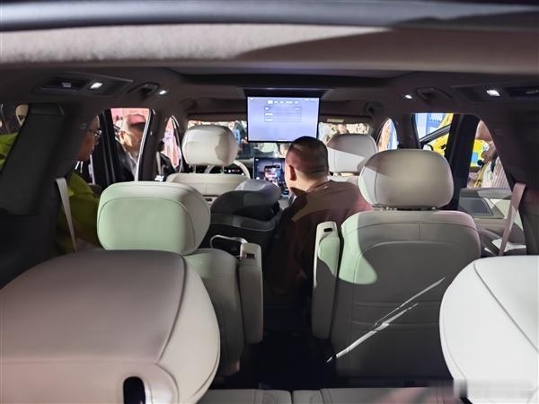 内饰方面,提供3种配色,前排50英寸AR-HUD及四屏联动,主副驾、二排均通风加热按摩,三排也带加热电动调节。配置含双50W无线充、17.3寸后排屏、11L冷暖冰箱、20扬声器帝瓦雷音响、128色氛围灯。