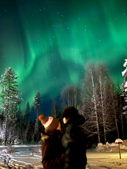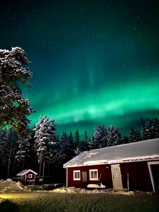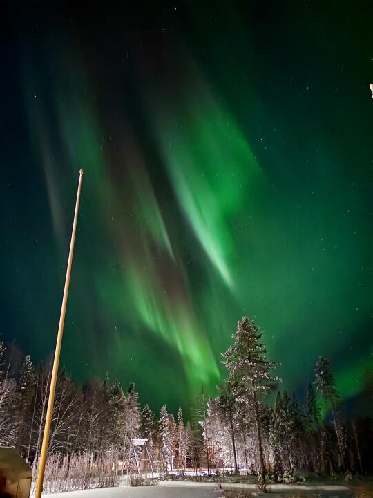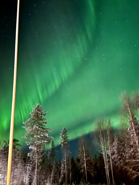 非常晴朗的一天,就在家的院子里,9点刚过,漫天的极光带 律动着和星星,太美了!