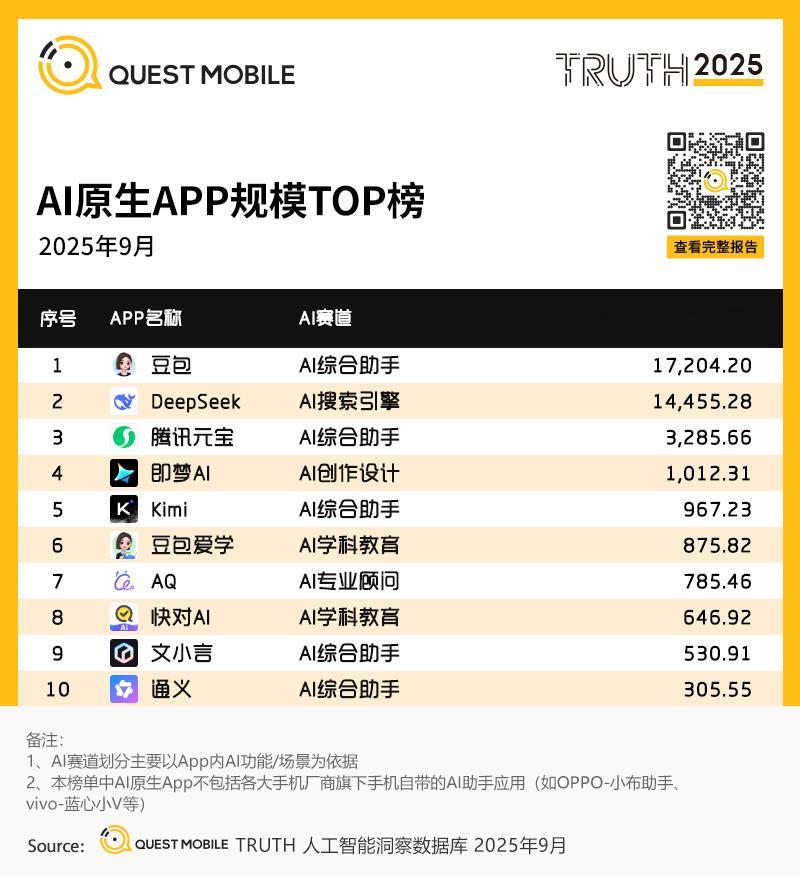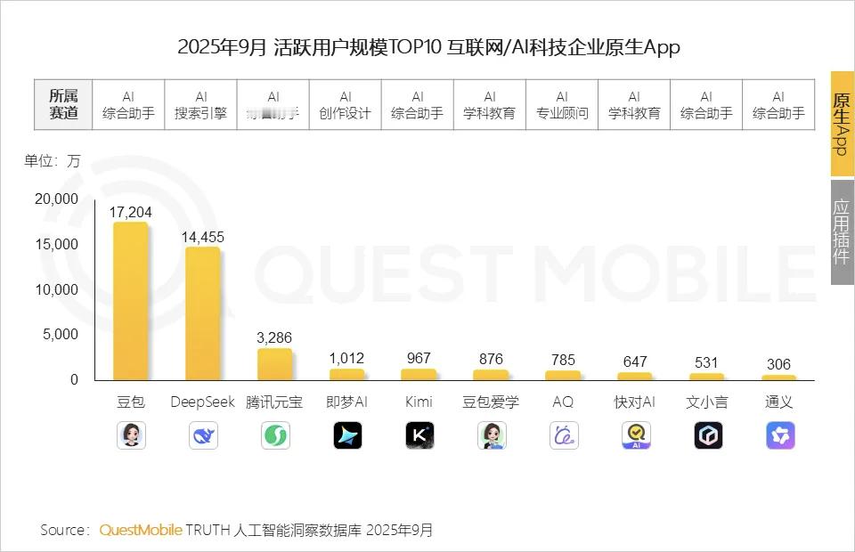 在第三季度的通用AI助手领域,豆包月活首超DS。