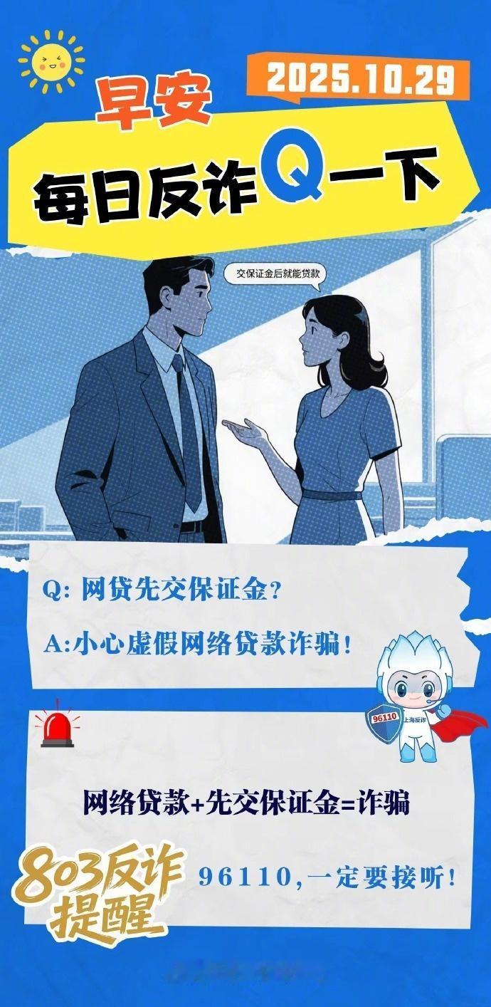 【每日反诈Q一下】早安!每日反诈Q一下,今天你get到了吗? 803反诈提醒:网络贷款+先交保证金=诈骗