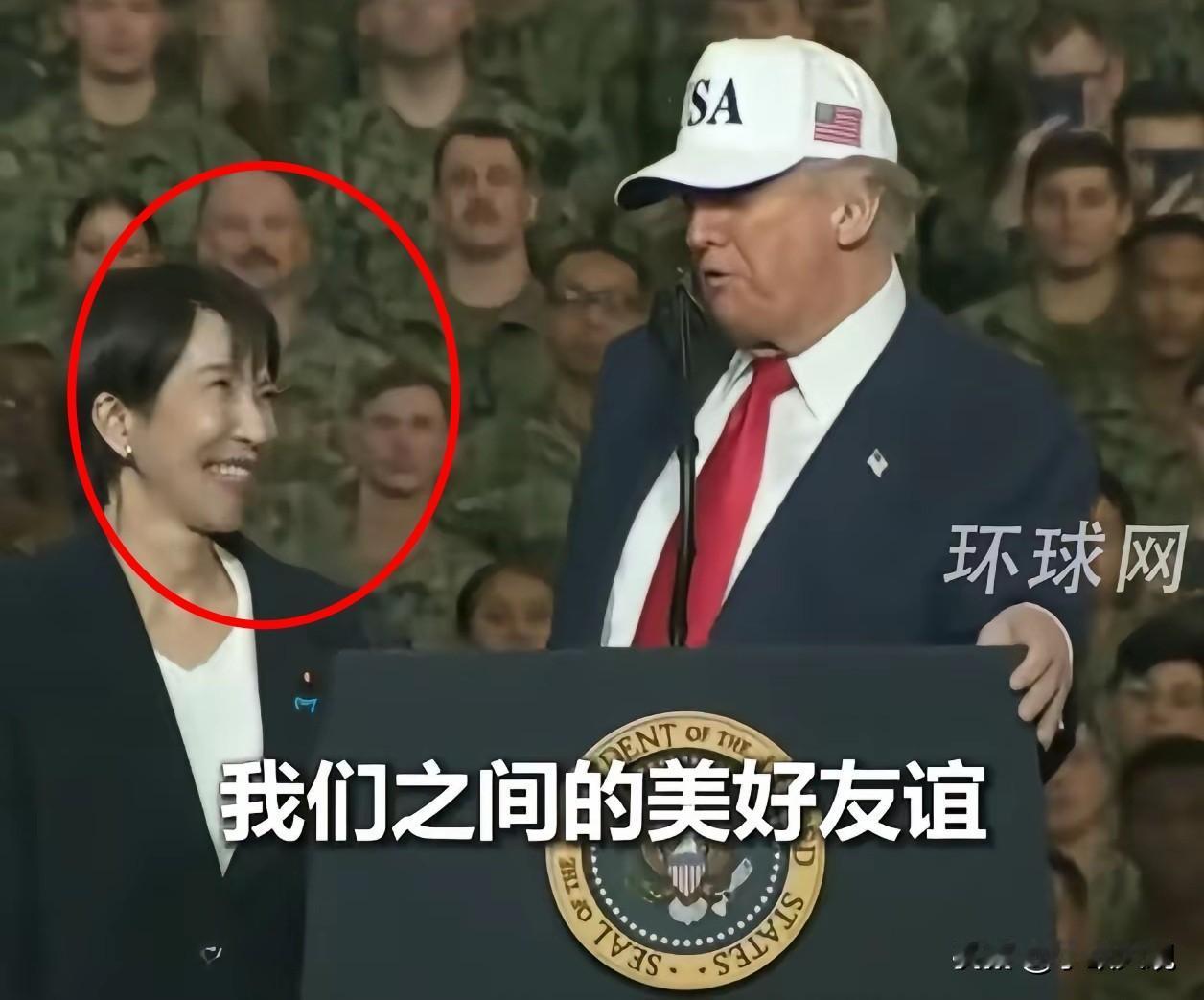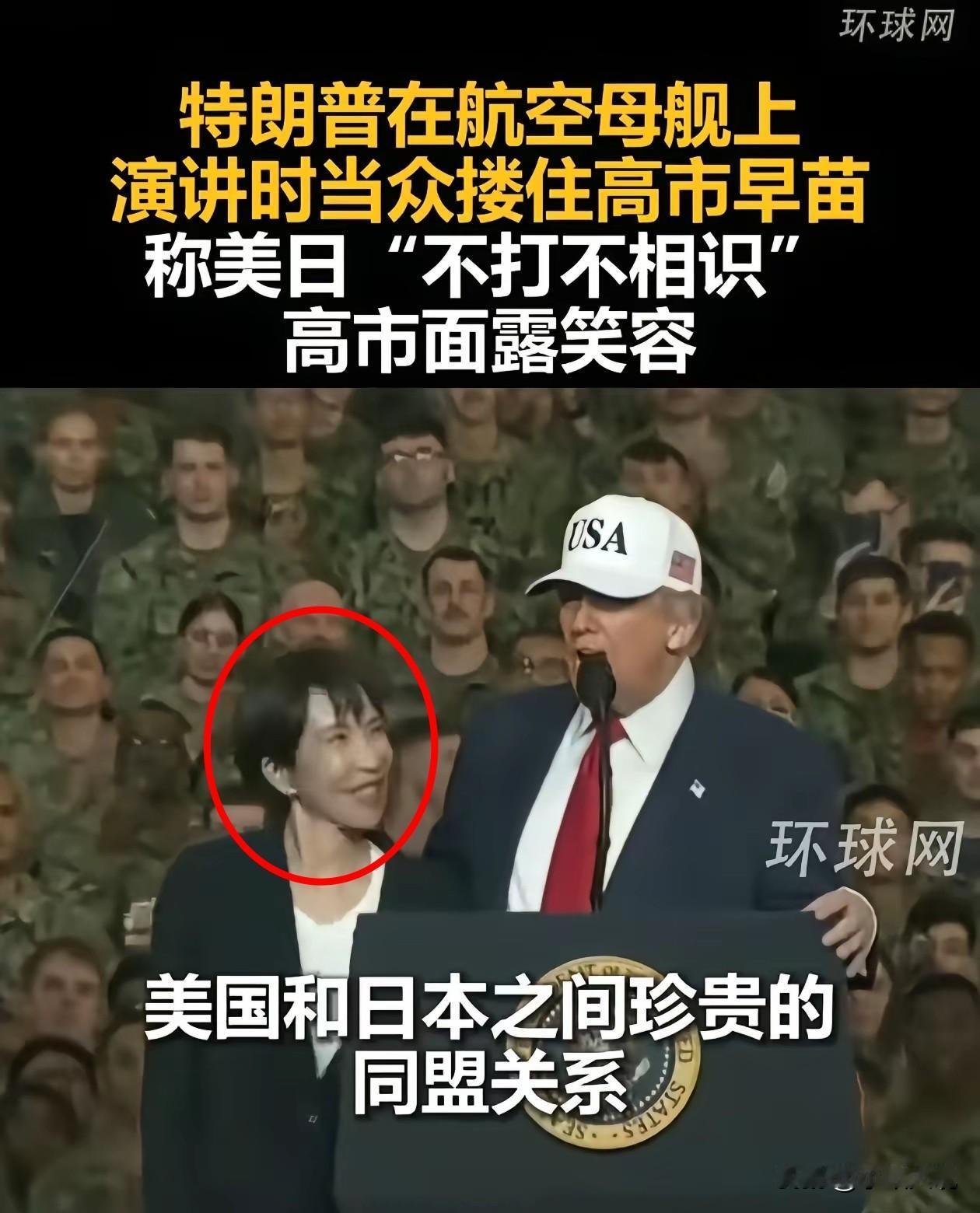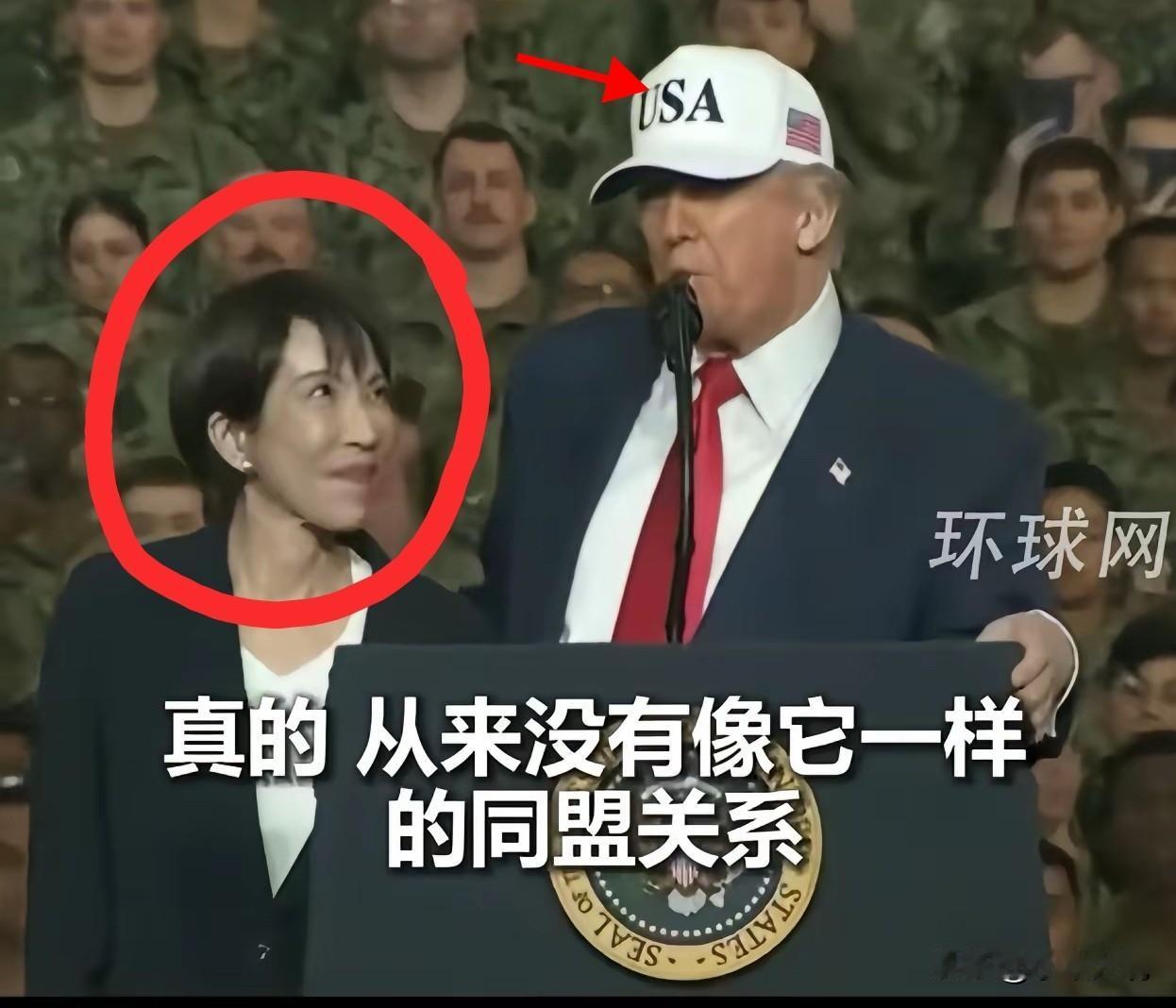 日本第一个女首相高市早苗,见到特朗普跟个小迷妹似的,眼睛就没离开过特朗普,笑的那叫一个使劲,生怕别人不知道他多想跟人套近乎。 在看特朗普脑袋上扣着顶“USA”的帽子,这三个字母可不是随便印的是“United States of America”的缩写,面部表情带着他一贯的风格,仿佛在这场互动中占据着绝对的主导地位,神态里透着一种强烈的掌控感。 这俩人的互动,看着就挺有意思,一个使劲凑近乎,一个满脸都是我“罩着你”的派头,一方拼命想抱大腿,另一方则觉得自己是大哥。