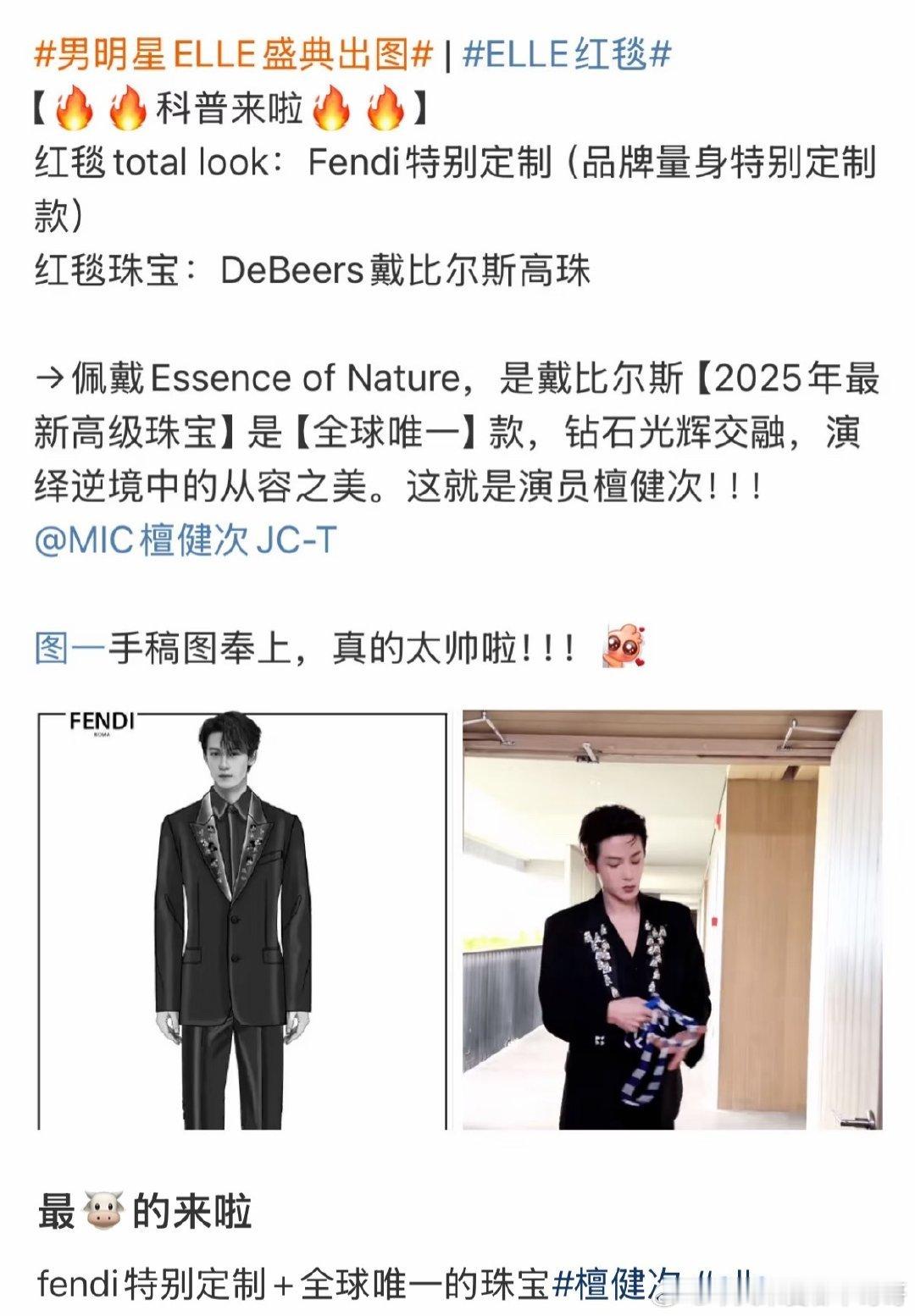 檀健次昨天ELLE活动,身穿fendi特别定制+戴比尔斯全球唯一款珠宝,这一套妥妥贵公子[拜托]