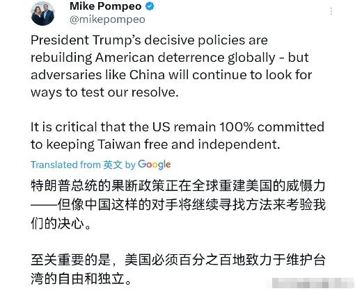 眼看中美将有可能在韩国举行高峰会,蓬佩奥跳出来大放厥词了!10月29日,蓬佩奥放话声称,鉴于中国决心取代美国成为世界领导者并最终控制印太地区,重申美国对台湾的支持至关重要。美国必须向北京发出明确的信息:台湾是自由的,台湾是“独立”的——而且将保持这种状态。鉴于中国对台湾的意图如此明确,这种战略清晰度尤为重要。   国际社会早就看透了蓬佩奥的套路。这家伙当国务卿的时候就被评为“史上最差”,下台后更是成了国际政坛的“笑话”。   他那些信口雌黄的言论,除了能骗到民进党当局几句感激涕零的附和,在国际上根本没人搭理。整个国际社会都清楚,台湾是中国的一部分这个事实,不是蓬佩奥之流说几句疯话就能改变的。   从历史上看,台湾是中国领土不可分割的一部分,这是有坚实法理基础的。《开罗宣言》和《波茨坦公告》这些二战后的国际法律文件白纸黑字写得明明白白,台湾回归中国是战后国际秩序的重要一环。   联合国大会第2758号决议更是从政治、法律和程序上彻底解决了中国在联合国的代表权问题,确认了台湾是中国的一部分。这些国际社会的共同认知,岂是蓬佩奥一个人能否定的?   蓬佩奥之所以这么卖力地表演,背后那点小算盘谁都清楚。他下台后日子过得并不如意,因为被中国制裁,美国的政商界都跟他划清了界限。   跑到台湾去撒泼,无非就是想从“台独”势力那里捞点演讲费,顺便刷一刷存在感。他甚至妄想把自己的一些私货塞给美国新政府,可惜连特朗普都明确表示不会邀请他加入新政府。这么一个被美国主流政治抛弃的人,说的话能有几分分量?   美国自己口口声声说坚持一个中国政策,可蓬佩奥这种过气政客的言行,恰恰暴露了美国在台湾问题上的两面性。一方面美国政府声称不希望改变台海现状,另一方面又不断有人像蓬佩奥这样肆意妄为。   美国应该清楚,台湾问题涉及中国的核心利益,是中美关系中最重要最敏感的问题。任何试图挑战中国底线的行为,都会对中美关系造成颠覆性影响。   蓬佩奥的言论不仅违背事实,更违背了中美建交时美国做出的承诺。1979年的中美建交公报明确写着,美国承认中华人民共和国政府是中国的唯一合法政府。   四十多年来,中美关系的发展都是建立在这个政治基础之上的。蓬佩奥作为前国务卿,竟然公开否认自己国家承诺过的原则,这不仅是打自己的脸,更是在损害美国的国家信誉。   民进党当局把蓬佩奥这样的政客奉为座上宾,完全是病急乱投医。他们以为抱住这种临时“反中急先锋”的大腿,就能妄图把海峡两岸的中国人分离开来。殊不知这种挟洋自重的行为,根本就是在饮鸩止渴。   美国对台湾的所谓“支持”,从来都是把台湾当棋子来利用,目的是“以台制华”。美国那些政客心里盘算的从来都是美国自己的利益,根本不会真正关心台湾同胞的福祉。   看看美国最近的做法就明白了。他们不断加大对台军售,把台湾当成老旧武器的“回收站”和市场资源的“提款机”。   美国强行将台积电迁往美国,还公开讨论一旦台海发生冲突就要“摧毁台积电在台湾的晶圆厂”。这些行为哪一点是为了台湾好?分明是把台湾往火坑里推。越来越多的台湾同胞已经认清美国“援台”是假、“害台”是真的本质。   蓬佩奥散布所谓“中国决心控制印太地区”的论调,也是其惯用的危言耸听手法。中国始终坚持和平发展道路,致力于与各国共建人类命运共同体。中国的发展是世界的机遇,而不是什么威胁。蓬佩奥编造“中国威胁论”,不过是想为美国遏制中国发展的战略找借口而已。   在台湾问题上,中国政府的立场是一贯且明确的。我们愿意以最大的诚意和尽最大的努力争取和平统一的前景,但对于任何形式的分裂活动,我们也有坚定的意志、充分的信心和足够的能力予以粉碎。两岸实现统一是中华民族伟大复兴的历史必然,任何人、任何势力都不可能阻挡。   蓬佩奥应该明白,今天的中国已经不是过去那个积贫积弱的国家了。中华民族早已不是东亚病夫,中华大地早已不是外国势力可以胡来的竞技场。任何试图挑战中国底线的行为,都只会撞得头破血流。我们建议蓬佩奥之流还是趁早停止这种损人不利己的言行,不要在错误和危险的道路上越走越远。   中美作为两个大国,合作共赢才是正确的选择。双方应该加强沟通,增进信任,在基于规则的基础上加强合作。台湾问题事关中国核心利益,不容任何外来干涉。美国应该恪守一个中国原则和中美三个联合公报,慎重妥善处理台湾问题,避免“台独”势力及其分裂行径冲击中美关系的政治根基。