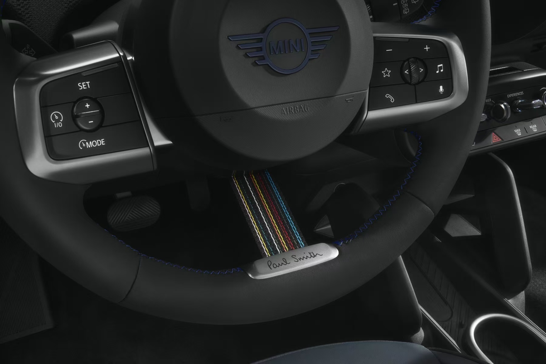 奶茶色的橡树白和偏蓝的拂晓灰,还有车顶、反光镜、前脸格栅上的诺丁汉绿,加上各种车内的细节,MINI PAUL SMITH低调且精致,克制的格调感。大V聊车