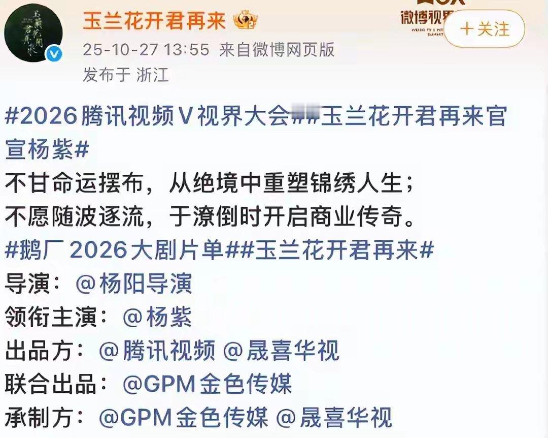 ​别人官宣新剧就写个名字带个剧名,她只是回应下剧方的官宣,文案都这么深入人心。