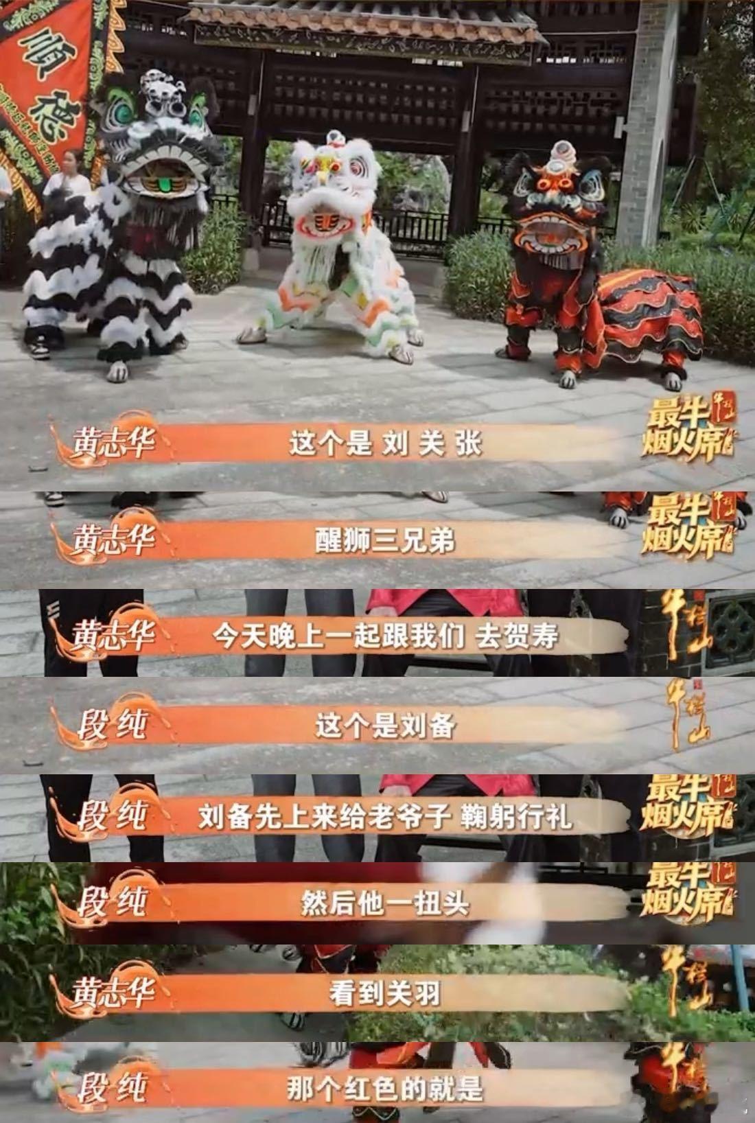 谁能想到醒狮界顶流竟是刘关张 顺德醒狮在《最牛烟火席》惊艳全场!刘关张化身为“醒狮顶流天团”,红狮关羽、彩狮刘备、黑白狮张飞,带桃园寓意贺寿,技艺与文化拉满!