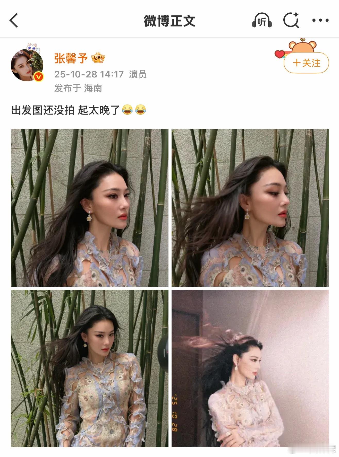 张馨予起太晚了还没拍出发图这样随便一拍就很美了[羞嗒嗒][羞嗒嗒]