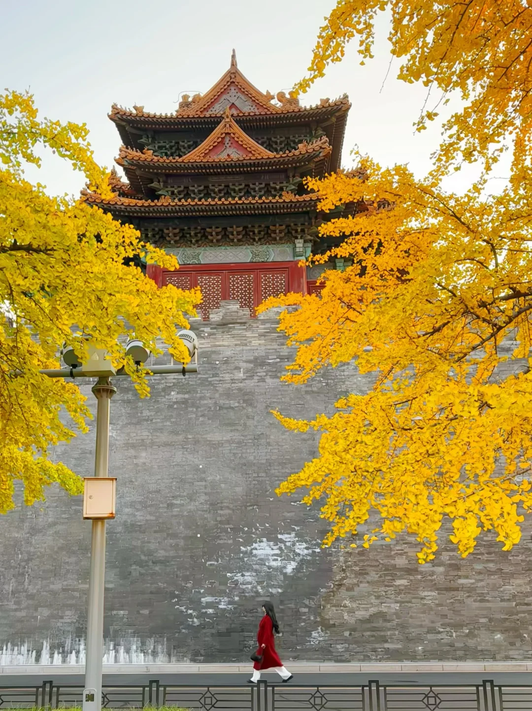 4、故宫西北角楼:这里的银杏还是绿色,至少还要过两三天才会黄一些
