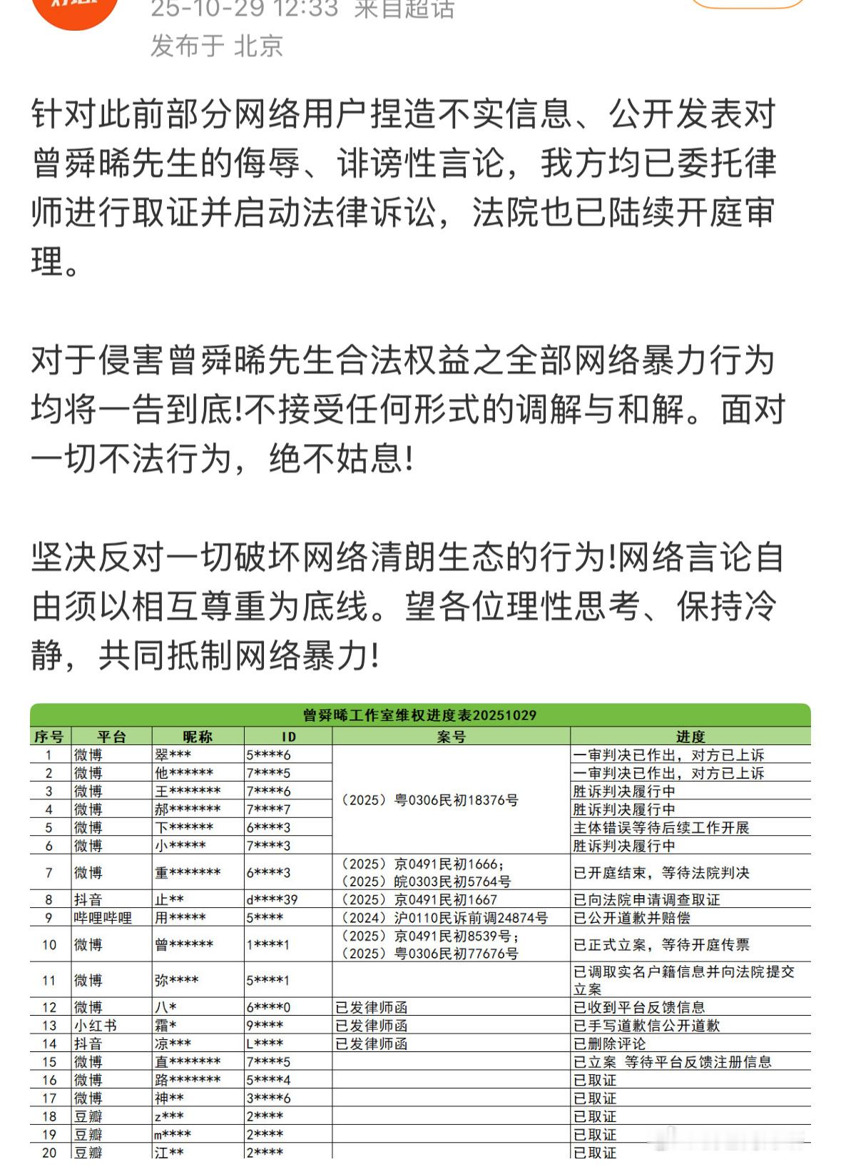 曾舜晞家发了告黑名单,各个平台的都告了,感觉他没啥黑料啊。
