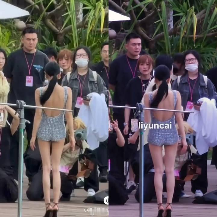 张天爱跟素人合影,胯真的好宽,大宅院似的