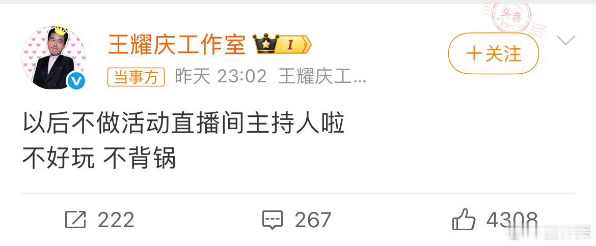 王耀庆工作室回应 王耀庆回应直播间对钟楚曦铁链开大[傻眼][傻眼]