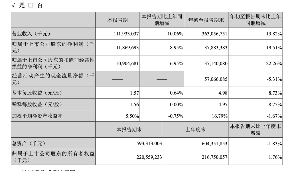 美的集团第三季度营收1119亿元,净利润119亿元增近9%