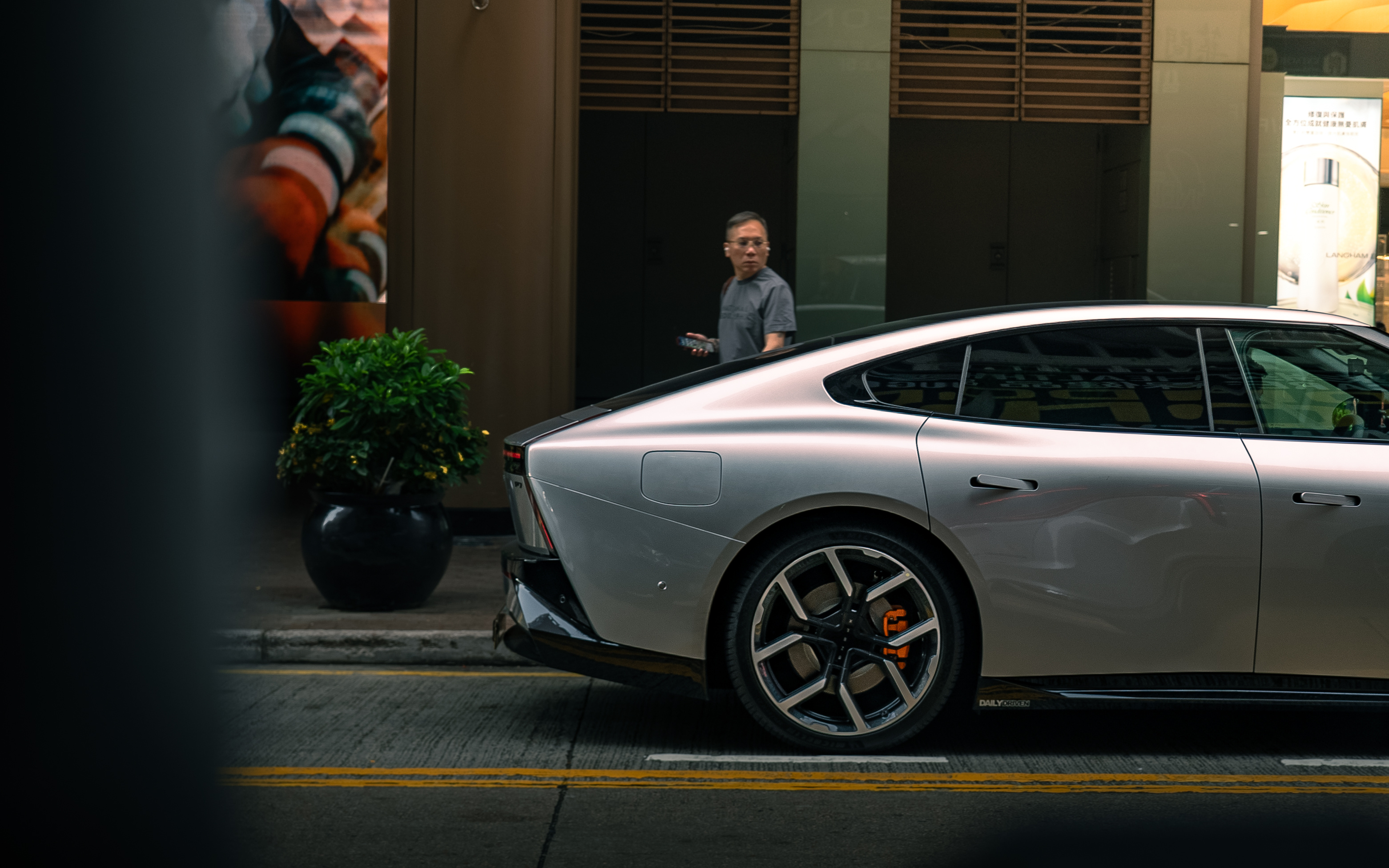 在香港街头,这复古味极浓的地方,全新小鹏P7真就像是一个未来穿越过来的车!太帅了!