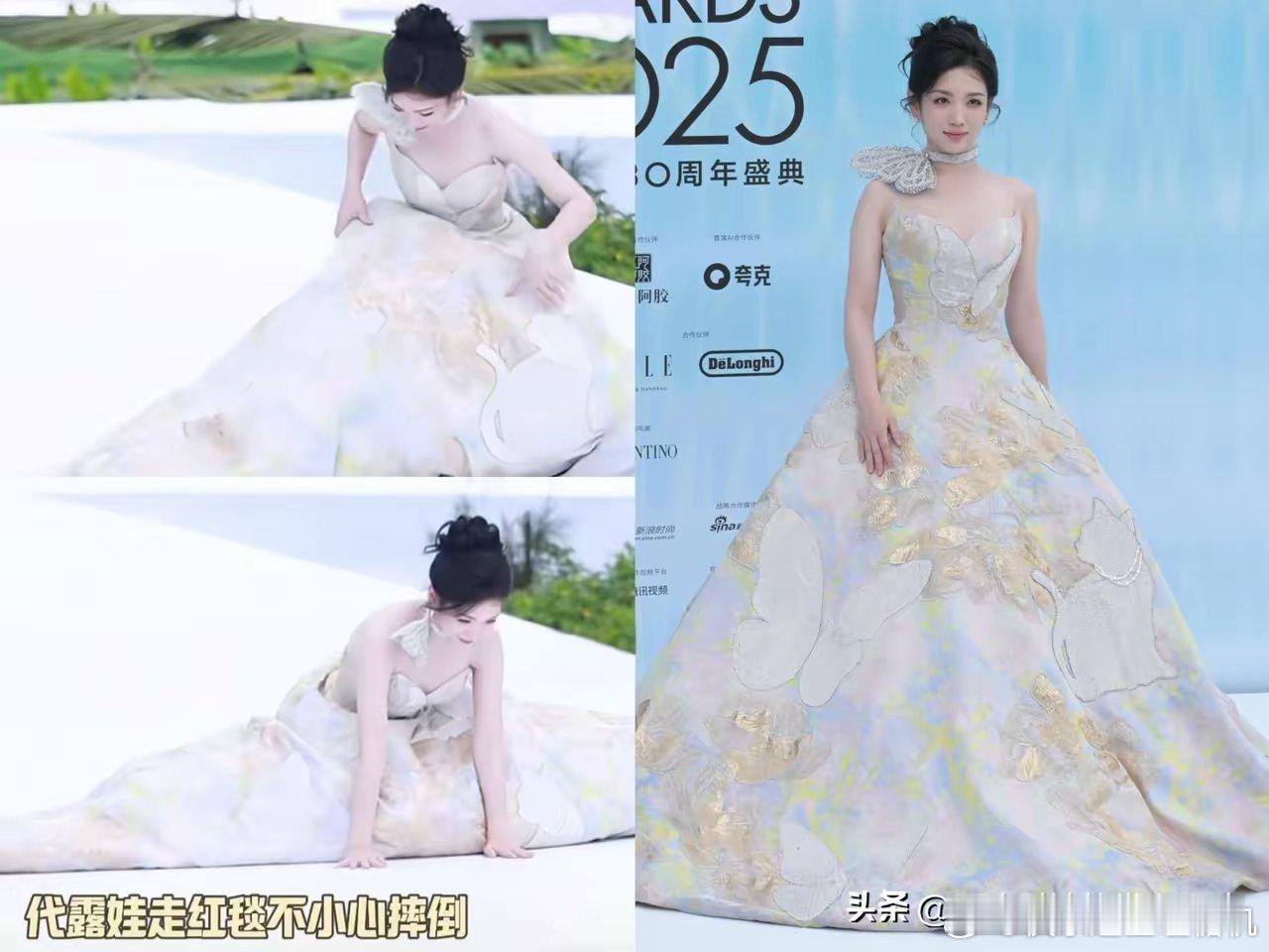 今天ELLE三亚盛典,代露娃刚上t台走几步就一直拽着裙子,估计是裙子太长太重了。