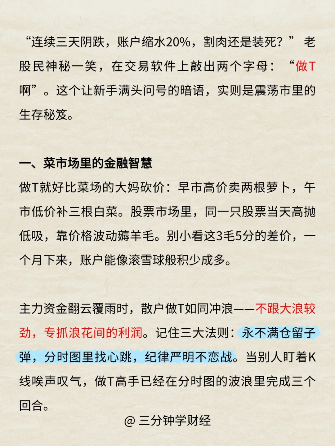 今天要说的"做T"内容,可能是最适合普通人的赚钱姿势!关注我,每天和我一起学习财经知识。投资有风险,入市需谨慎。