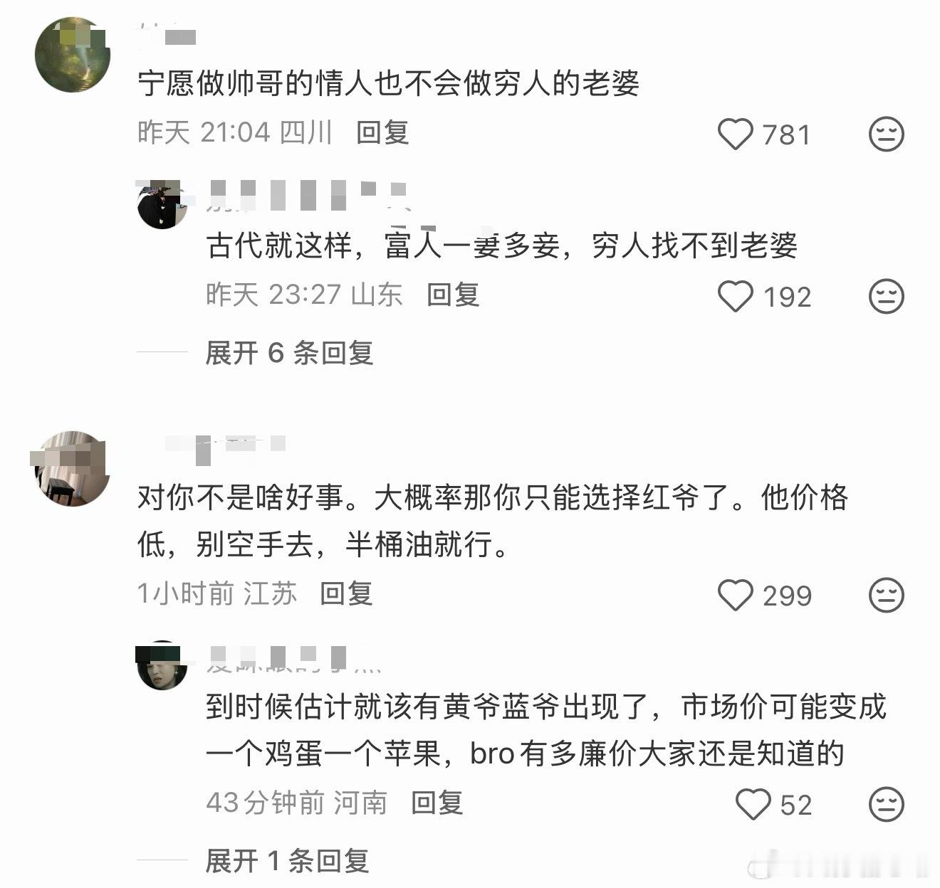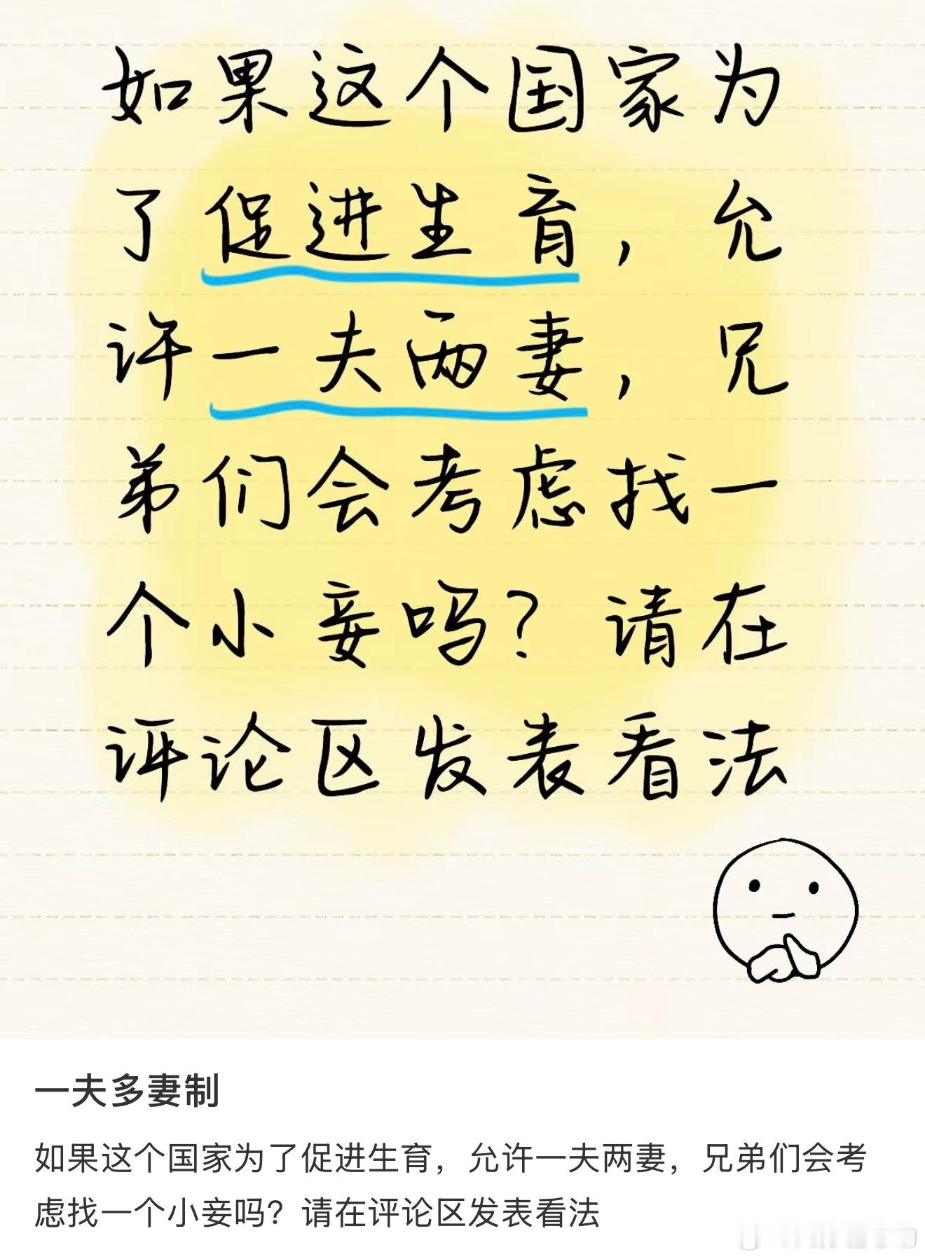 “如果一夫多妻制我会不会有一个小妾”“一夫多妻制使大部分男性能娶到妻子”“古代穷