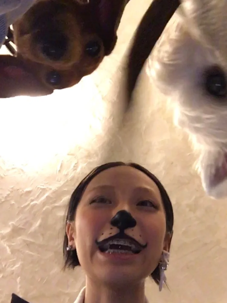 p1/2出门前照一下 p4小猫狗smile p7/8小宠物都喜欢躺在人怀里啦 p9鼻孔没画干净!👀 p10才发现我头上是quila的尾巴!小腊肠就是会扭哦💃 p11他叫松松 对着镜头好会摆表情哦 五个月大的宝宝😍 p16很喜欢这组合照 男帅女美 感觉到位👫🏾 p17小狗住嘴🤐 一起微笑啦