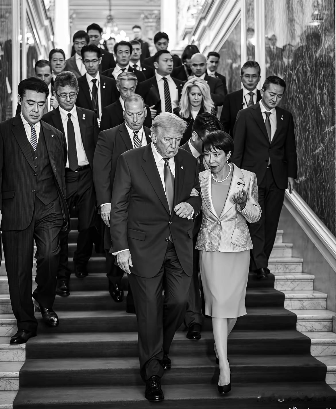 这张照片,这个场景注定将成为经典。 肯定会载入史册的,未来会有人给这个画面起个名字。 叫做扶着美利坚下台阶。 寓意着美国的国运蒸蒸日下。 毫不夸张的说,现在美国也就需要这些女政客了。 因为只有这些女性乘客才豁得出脸面去。 才敢如此赤裸裸的卖国。 这一招在欧洲,美国人用的太爽了。 扶持一批脑子有点问题的女政客,搞点什么政治正确。 绝对可以把整个国家搞乱,然后把所有利益都送到美国手里。 现在这股风终于刮到亚洲了。 如此的谄媚实际上脚盆鸡家的民众都已经看不过去。 但是又能怎么样呢? 表面上看他们是一人一票制度。 但是实际上摆在台上,让你选择的那些人其实都是一样的。 你选哪个都是一样的结果。 看似有选择权,实际上根本就没有选择权。