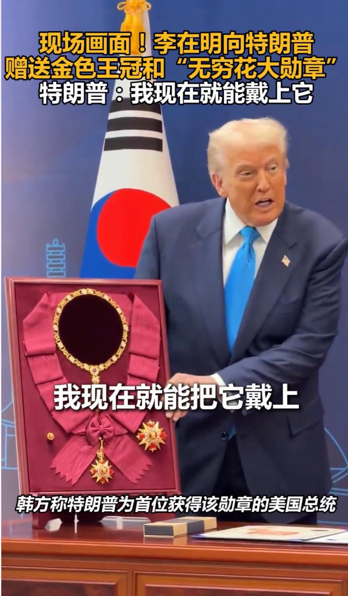 特朗普这次亚洲的感觉一定很好, 日本🇯🇵、韩国🇰🇷领导人是懂他的, 反正尽显谄媚, 都把他捧上天了, 他可乐坏了。 但在送礼环节, 韩国技高一筹, 礼物🎁比日本高贵, 想必懂王更喜欢。 对于日韩这两个亚洲盟友, 特朗普回去会区别对待吗? 聊特朗普