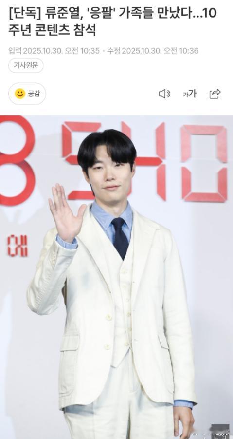 柳俊烈将参与请回答1988团综拍摄  柳俊烈调整了日程,将参与《请回答1988》十周年的部分拍摄 [傻眼]