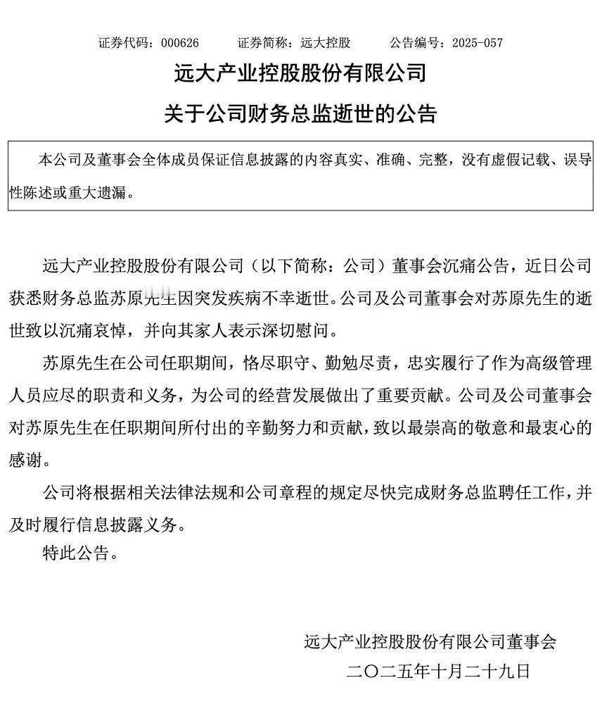 最近上市公司财务总监因病离世的消息让人唏嘘。10月28日,远大控股40岁的财务总监苏原突发疾病去世,他上任才2年,去年年薪近百万。苏原履历丰富,曾在多家公司任职。 无独有偶,10月19日,大智慧任职超8年半的财务总监陈志也不幸去世。新财务总监申睿波临危受命。 这些事件给人敲响了警钟,高薪背后是巨大的工作压力。在追求事业成功时,也别忘了关注自己的身体健康,毕竟身体才是革命的本钱。