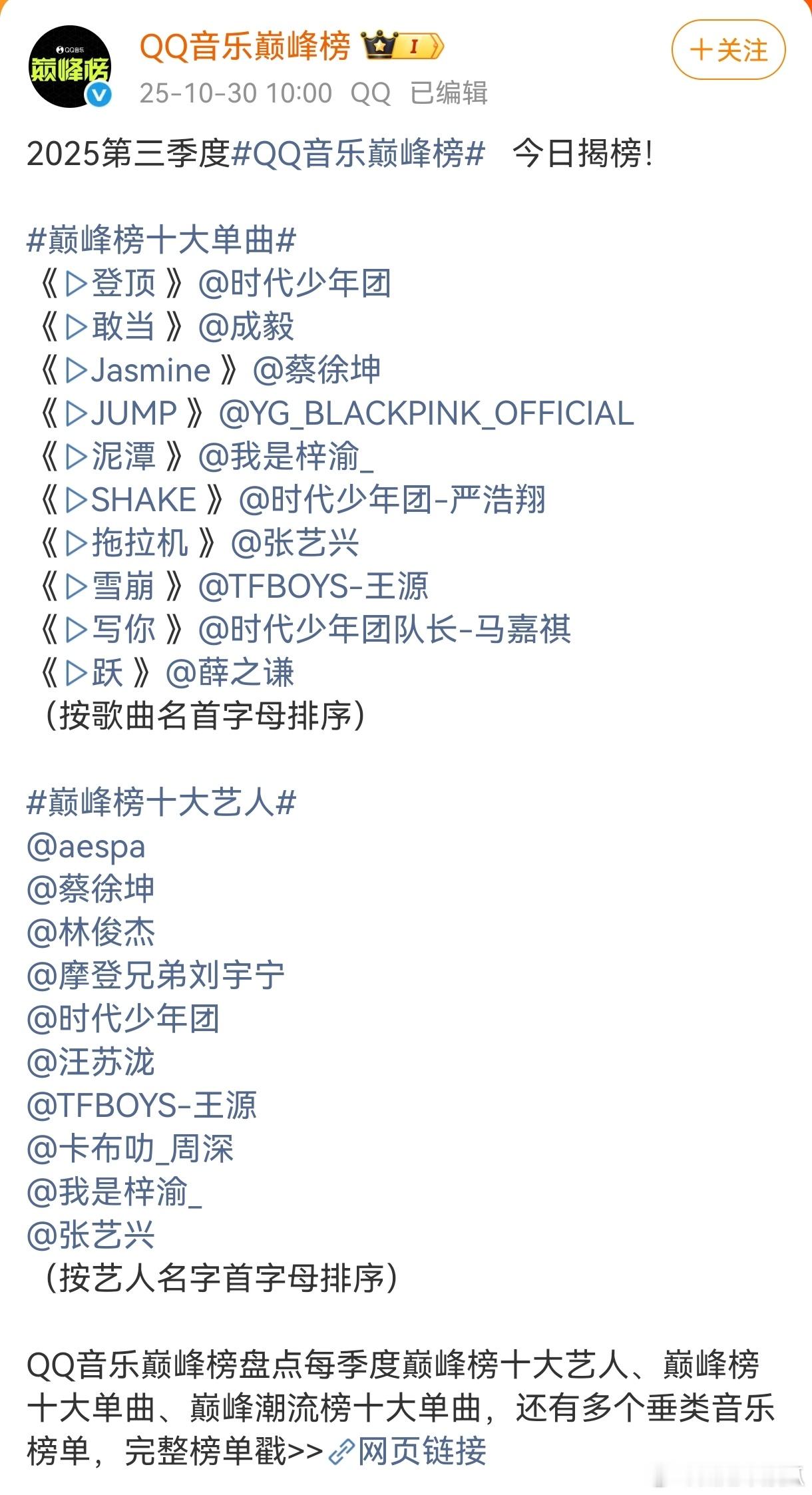 梓渝几个月就完成弯道超车,晋级qq音乐巅峰榜十大艺人,好励志,音乐我们是认真的。