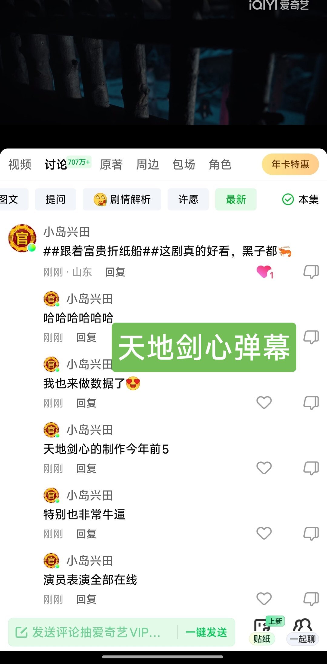 我给自己盖了个楼,这样刷评论可以吗?——《天地剑心》弹幕区。[嘻嘻]​​​