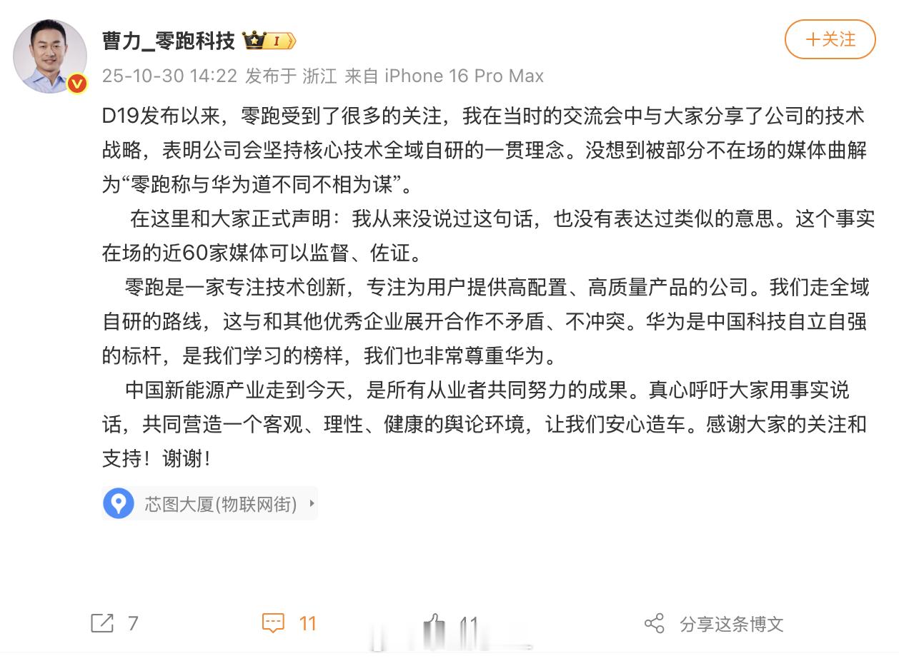 这事情零跑官方出来说明了,“道不同不相为谋”这种话确实不是普通人在采访的时候能讲的出来的😂