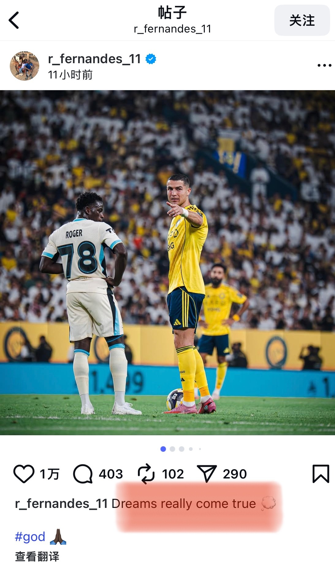 罗迷弟遍布整个足坛[拜托]和罗同场后,“梦想真的成真了”利雅得胜利vs吉达联合