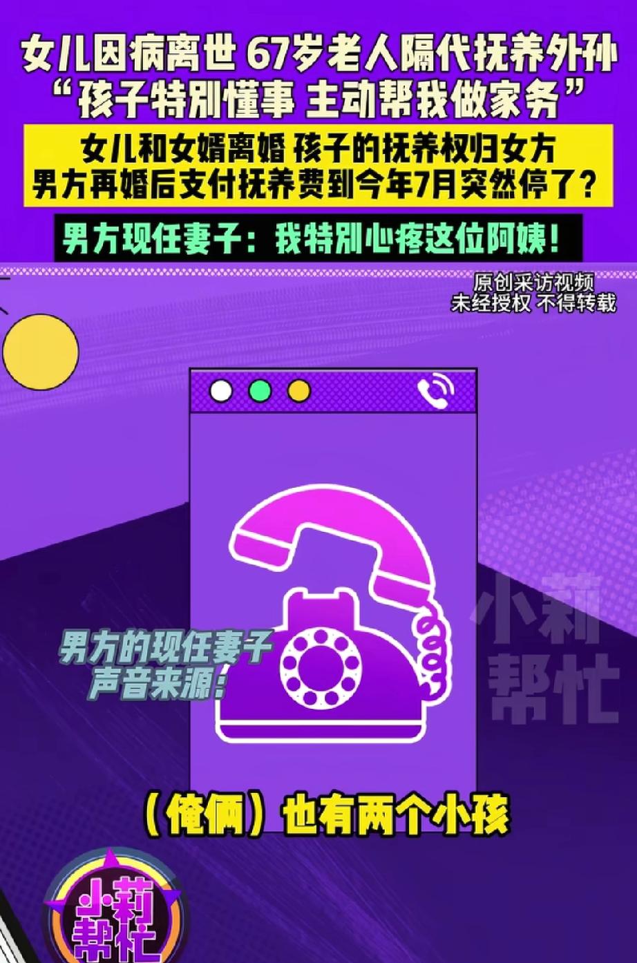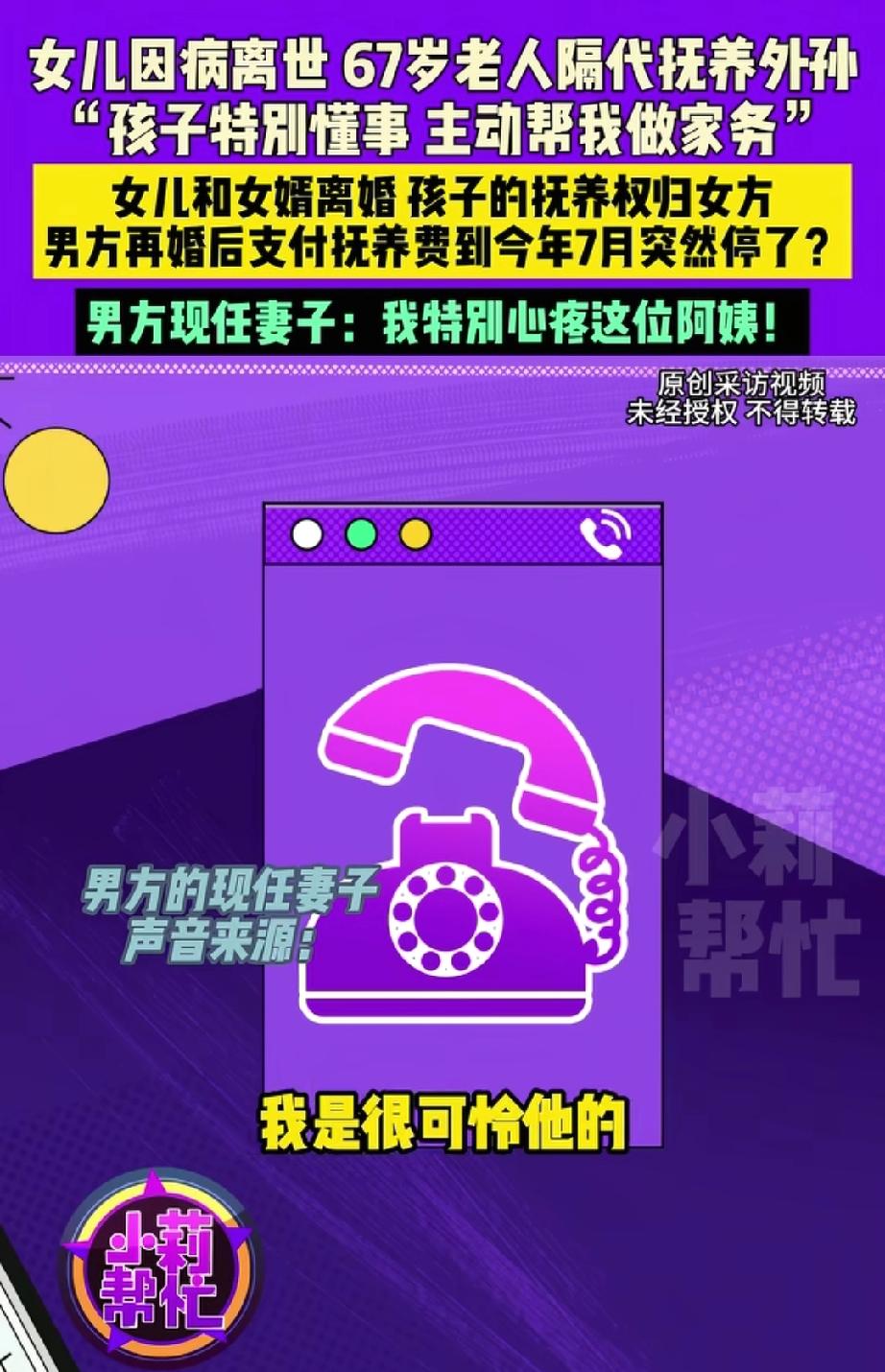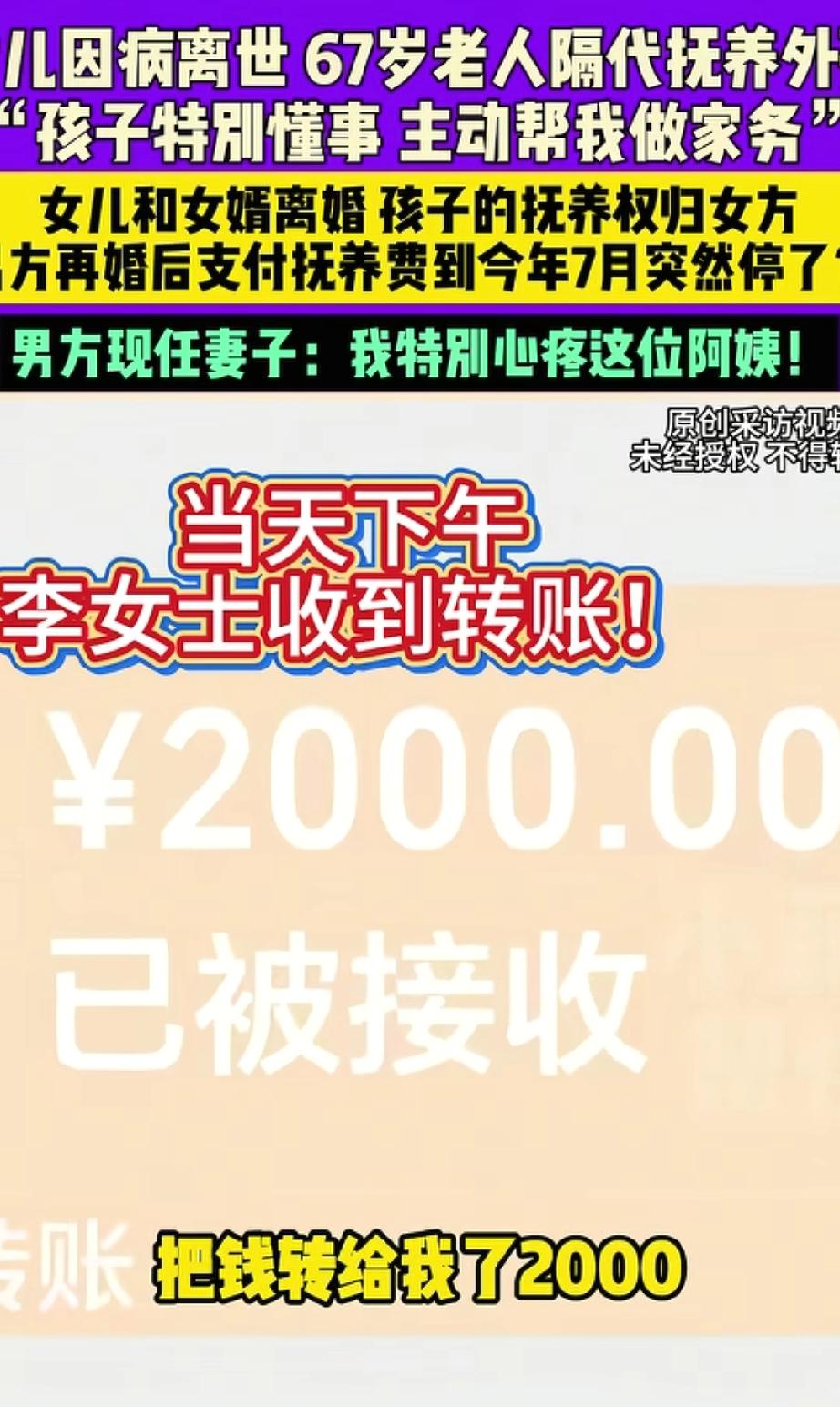 女儿离婚后不久便患病离世,留下了一个10岁的男孩。考虑到前女婿已然再婚,男孩便跟着67岁的姥姥生活,男孩的父亲每月会支付1000元抚养费。 没想到从今年七月起,连续四个月父亲不再给男孩抚养费。 姥姥每次打电话去要钱,孩子父亲态度极差,直说:“我媳妇怀孕了,没钱,没钱,你怎么老打电话?”随后拉黑了姥姥的电话。 姥姥向“小莉帮忙”的记者求助。 记者拨通了父亲现任妻子的电话,妻子诉说了自己的难处:“我和他结婚后,生了两个孩子,他基本都不管这俩孩子。” 接着又提到男孩:“他没了母亲,父亲又不爱他,怪可怜的。这位大姨能替女儿担起养育孩子的责任,我很佩服。你们放心,我去联系他,让他转钱。” 从父亲现任妻子的话语中,能看出她是一位有正义感、知书达礼的女性。 不久后,姥姥微信收到父亲转来的2000元,并承诺余下的2000元下个月给。 世间幸运无数,不及遇见她。她明事理、懂分寸,以教养化解矛盾,用温柔治愈疲惫。这样的伴侣可遇不可求,希望这个男人能好好珍惜,珍惜方能长久相伴、岁月长安。 来源:小莉帮忙