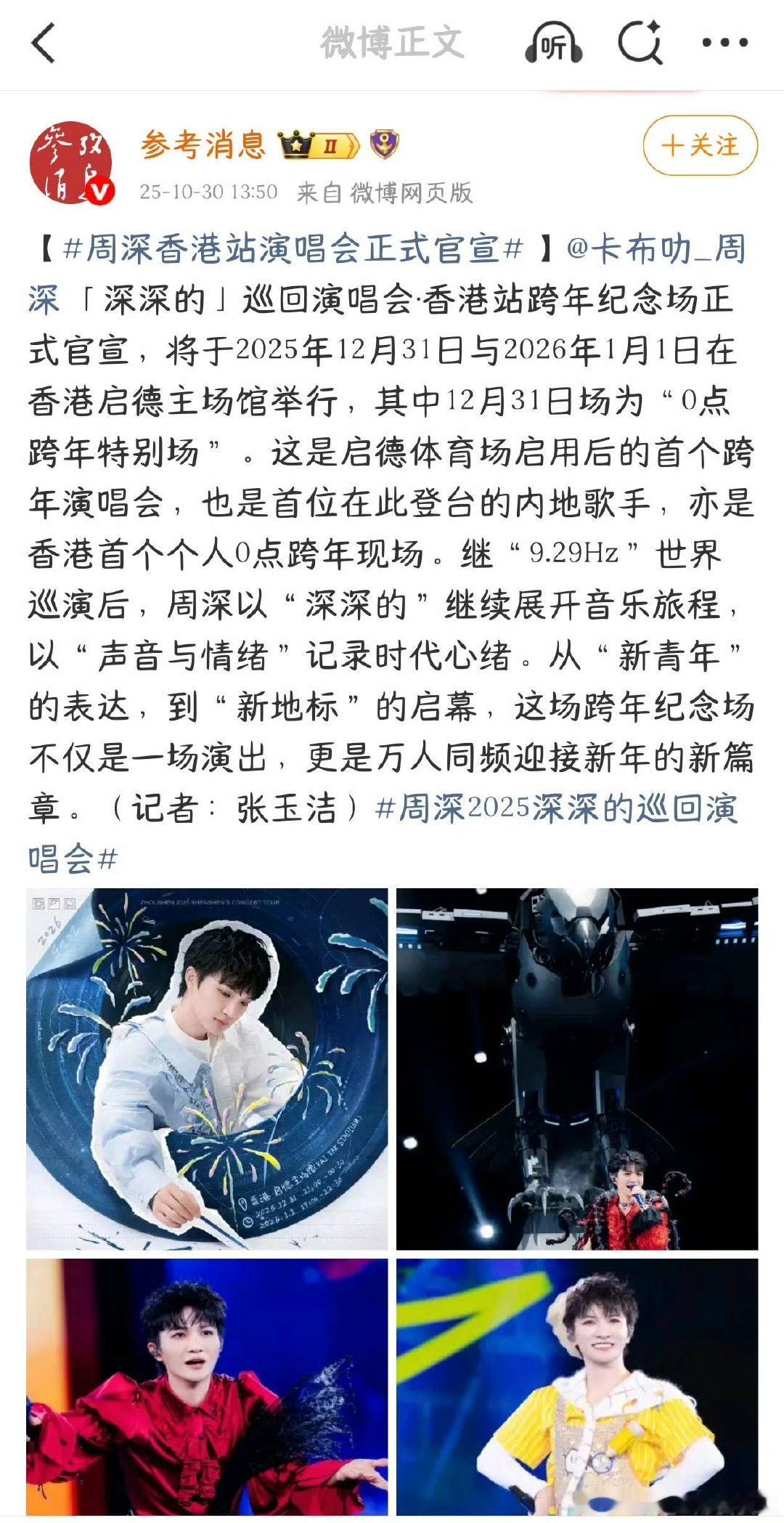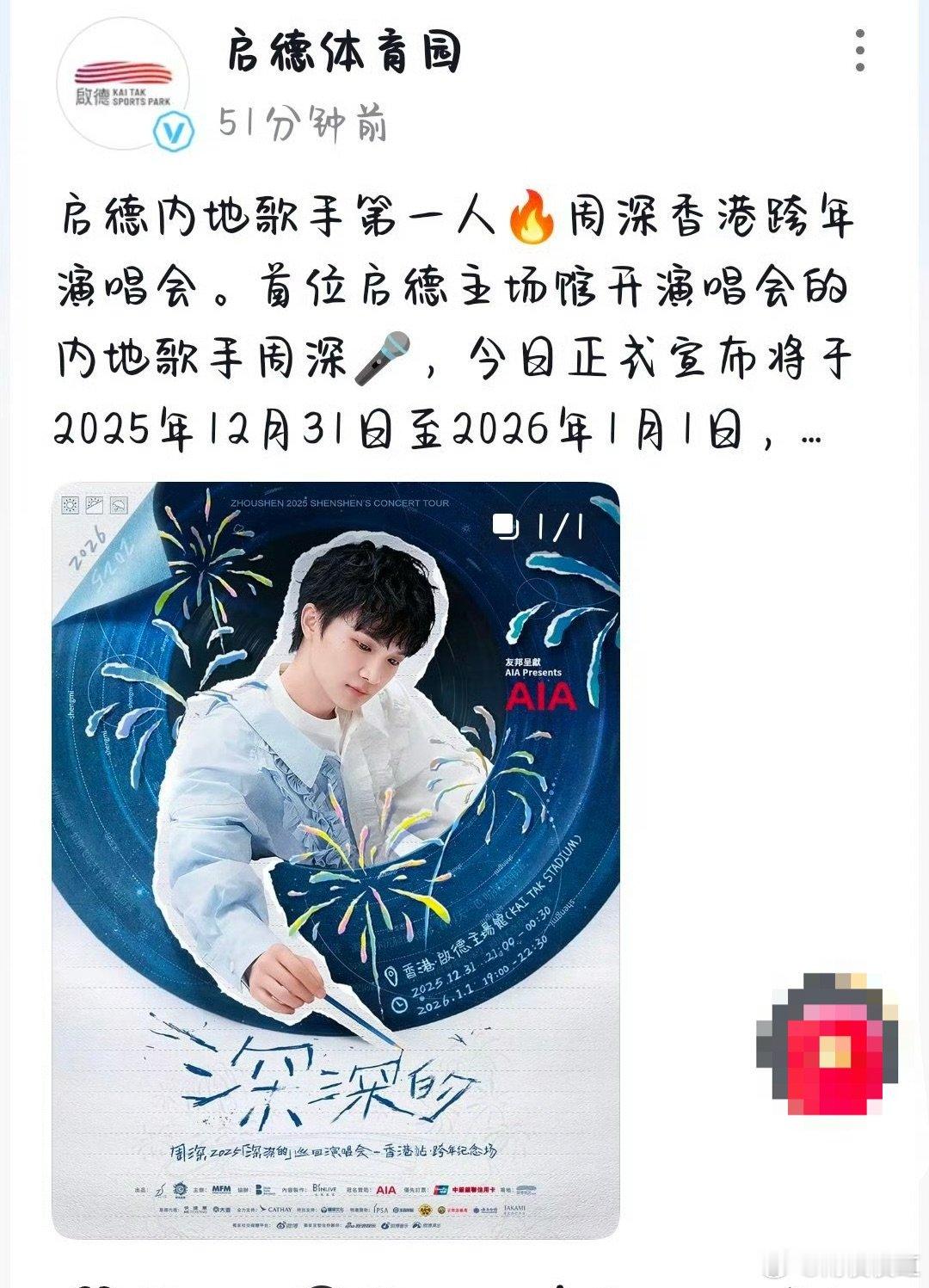 周深首位内地歌手登香港启德主场 这排面真的绝了!周深要在5万容量的启德主场开跨年演唱会,既是内地歌手首秀又是场馆首个零点跨年,已经攥紧手等抢票!