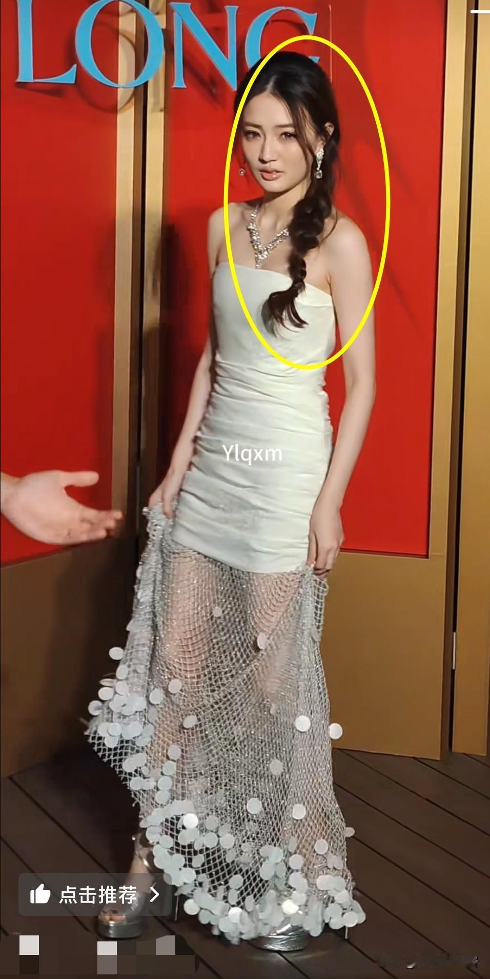徐露是不是得罪化妆师了? 明知道徐露喜欢休闲鞋装的人, 还让她穿这种裙子, 徐露看着都不开心了, 估计是这个抹胸渔网拼接裙太不舒服了, 低头又怕走光, 不低头又怕踩到“鳞片” 把徐露整得措手不及的, 而且她也不适合这种造型, 看起来别别扭扭的,