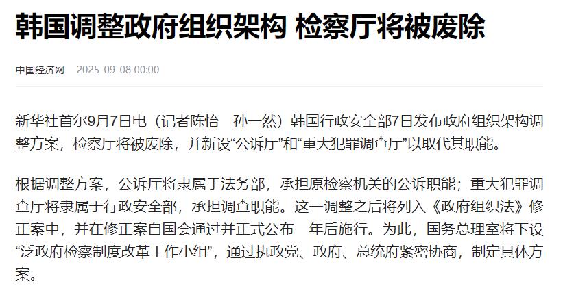 李在明可能是韩国历史上最厉害的总统之一,因为他亲手终结了韩总统的“心腹大患”——韩国检察厅。而熟悉韩国历史的人都知道,韩国历届总统,基本都是被韩国检察厅拿下的!   韩国检察厅以前有多“横”?它手里攥着两把“尚方宝剑”:既能决定谁该被送上法庭,又能直接牵头办大案。   更离谱的是,连警察办案都得看检察官脸色,检察官说查哪就得查哪,说怎么查就得怎么查,妥妥是司法系统里说一不二的“大哥大”。   其实早在文在寅当总统时,就想掰掰检察厅的“铁手腕”。他先是推动国会通过法案,把检察厅对警察的“指挥权”给收了回来;紧接着又成立“高级公职人员犯罪调查处”,专门负责查当官的,等于把检察厅最核心的“查高官权”给抢了过来。   当时不少检察官上街抗议,但文在寅硬是顶住压力把改革推了下去,这两步下来,检察厅的威风已经减了大半。   可谁想到,检察官出身的尹锡悦上台后,又想给老东家“回血”。他直接在行政安全部底下设了个新的“警察局”,把警察的人事任免、纪律处分权全攥在手里。   这招一下就惹毛了警察队伍,189名警察署长集体联名抗议,举着“还我执法权”的牌子集会,结果尹锡悦二话不说就把带头的几个署长给调岗了,态度强硬得很。   等到李在明上台,干脆来了个“一锅端”的改革。他带着法务部官员多次和国会议员沟通,还公开召开听证会解释改革必要性,最终推动国会通过法案,把检察厅拆得“四分五裂”。   以前一把抓的侦查权被劈成两半:普通小偷小摸的案子归警察全权负责,像贪污受贿、经济诈骗这类重罪,则交给新成立的“重罪调查局”。   而为了防止这个调查局变成第二个“检察厅”,李在明特意把它划给行政安全部管,等于加了层“紧箍咒”。至于决定谁该被起诉的权力,也交给了新成立的“公诉厅”。   和以前检察厅“自己说了算”的“独立王国”不一样,公诉厅的人财物全由法务部管着,检察官想任性都没机会,说穿了就是法务部手下的一个普通科室。   而曾经不可一世的检察系统,这下算是彻底从“云端”掉到了“地面”。   但共同民主党的强硬派还觉得不够“狠”。他们正天天在国会施压,要求把公诉厅仅存的“补充侦查权”也拿掉——就是说案子起诉后哪怕发现新线索,检察官也不能自己去查了,得交给警察或调查局。   李在明目前还没松口,但要是这招真成了,检察系统就彻底没了翻盘的可能。