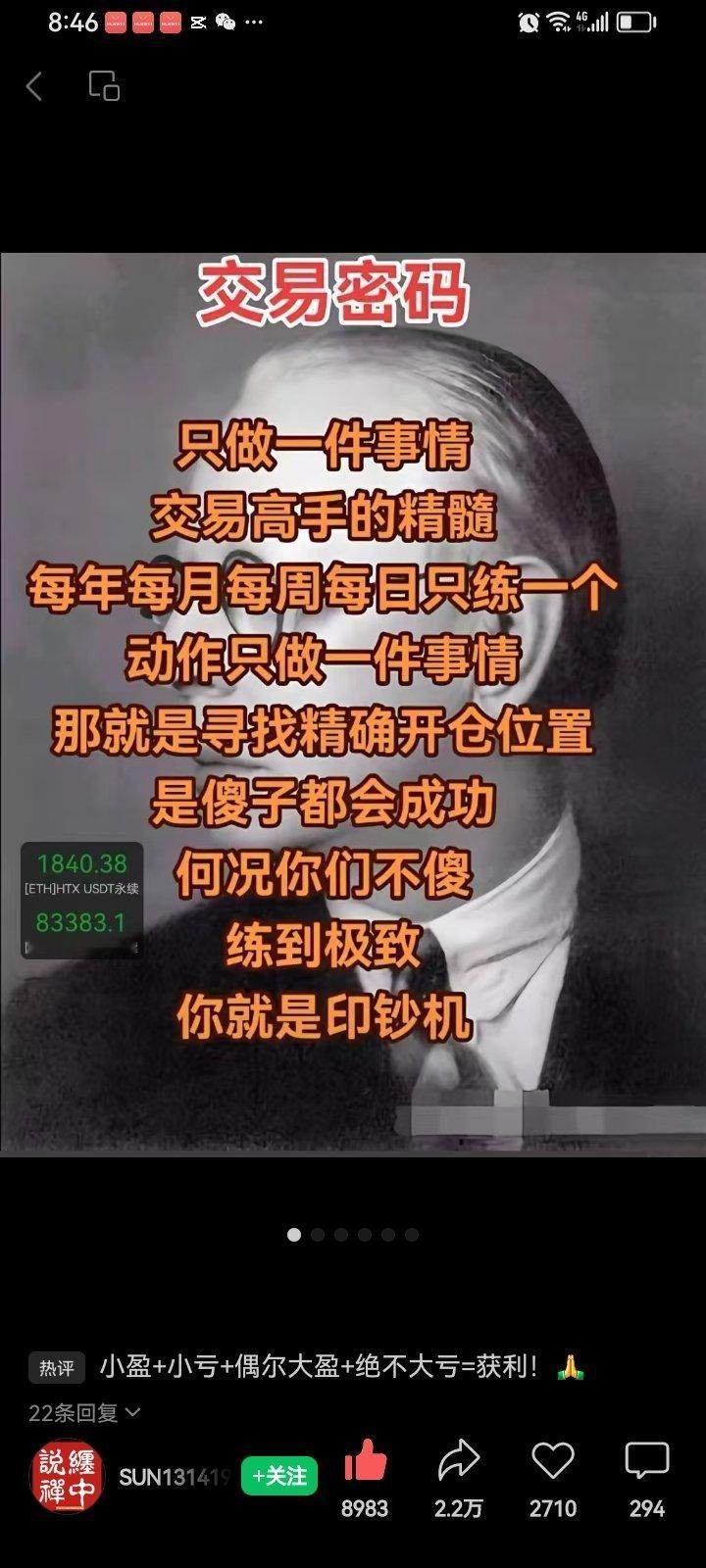 等待时机,精确开仓,顺势操作,不做反弹和回撤那几个小点,重复赚钱的经验。