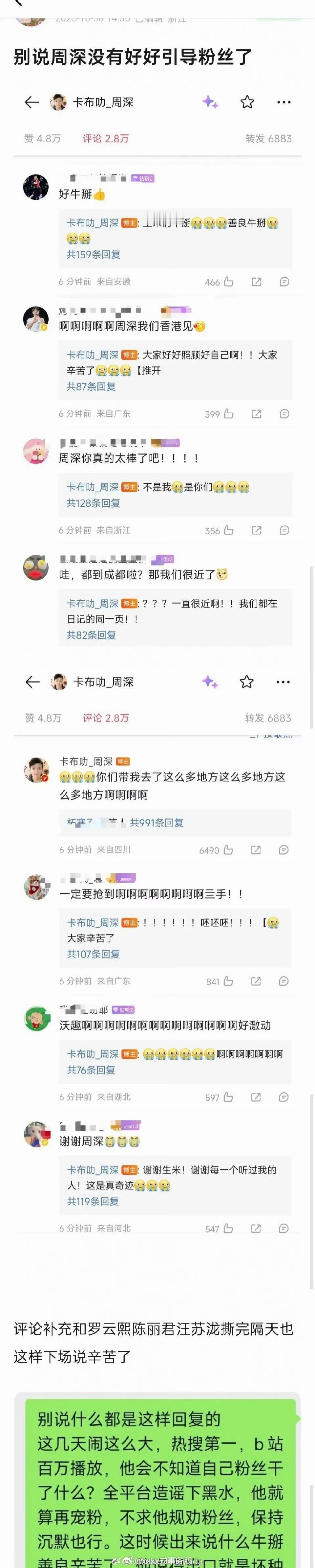 周深被说引导粉丝,这是正常的互动吧,而且他好像每条微博都回复粉丝评论粉丝[笑cr