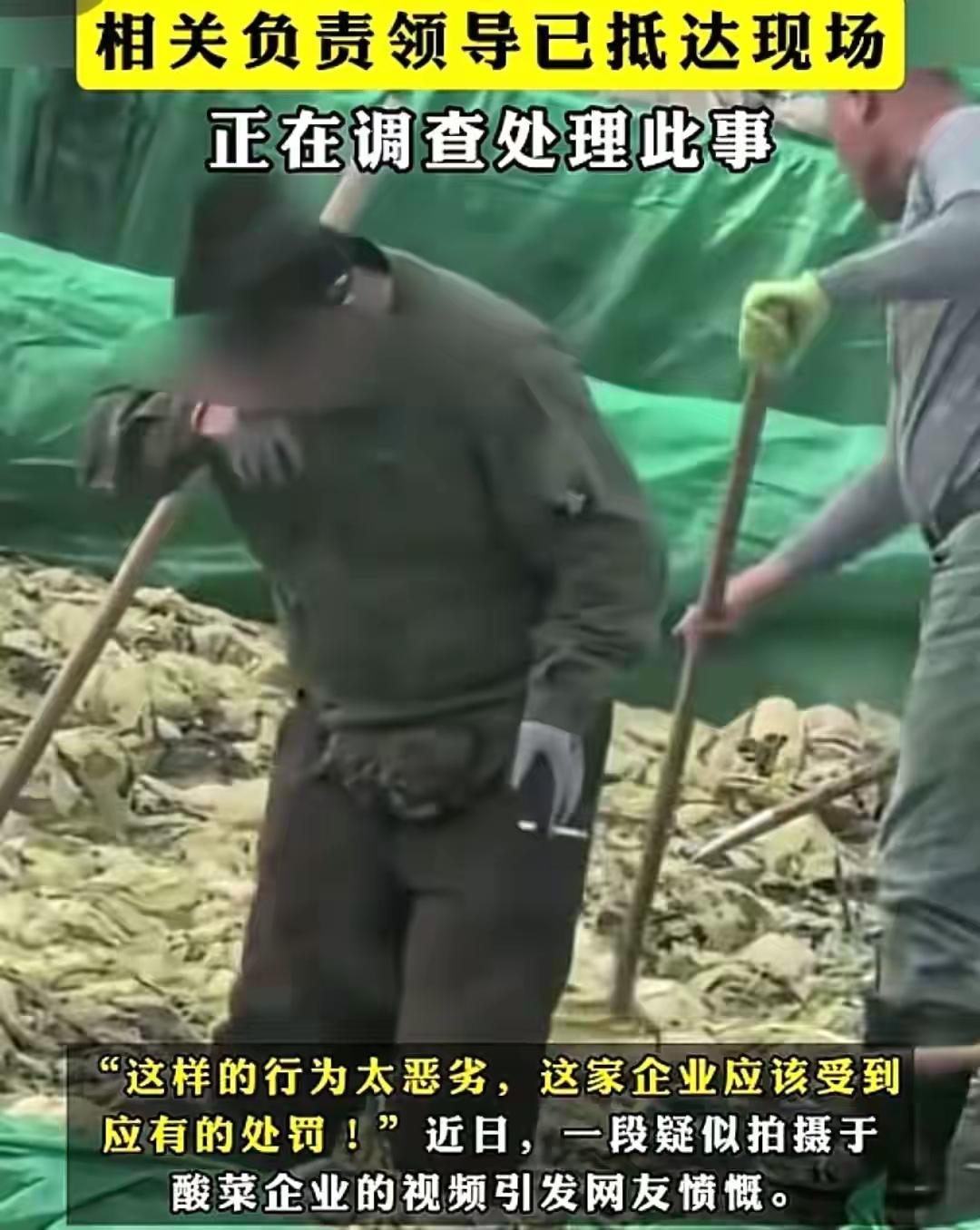 往酸菜池子里吐痰的家伙,四十多岁吧,还没学会做人! 这一下把很多酸菜厂都要干倒闭。 监管就存在问题,不是封存当前的,还应该卖出的全部下架,查封这个工厂而且曝光。 现在藏着掖着,会害了大部分酸菜企业,因为谁也不知道买的是不是这家的,索性大家都不敢买,直接导致其它工厂也卖不出去。 工人有错,但厂家才是罪魁祸首,怎么管理的,平时干活,几个人中没有负责人?主要问题是厂家,也幸亏这个视频,让大家对这种规模化生产方式,有了初步了解