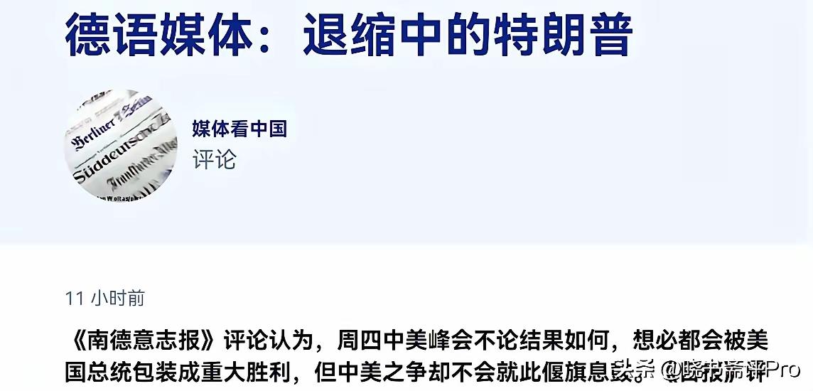 德媒同时点名批评中美两国!德媒声称,特朗普面对中国将继续退缩下去,特朗普正让中国变得更加自信,德国却被夹在其中!10月30日,德媒刊文声称,中美峰会不论结果如何,想必都会被美国总统包装成重大胜利,但中美之争却不会就此偃旗息鼓。特朗普显然误判了自己关税大棒的力量,它既没有让中国屈服,反倒损害了美国及其众多盟友的利益。因此,特朗普除了退让,现在已经别无选择。 网友:老德:二人相斗寡妇得利,你应在中美俄之间保持中立用俄罗斯廉价能源发展自己,再用技术挣中国人的钱,然后和美国人讨价还价,可惜你近打俄罗斯远杠中国,你说你不难受谁难受? 中美两大国博弈,本来就是先死各方小弟,小弟不死,大哥不会舍得自己上场肉搏的[大笑] 德国从互利网时代开始就几乎没有任何建树,互联网 移动互联网 人工智能 这些阶段 没有德国人什么事,就抱着那点儿制造业,最后新能源车一崛起,德国更完蛋。