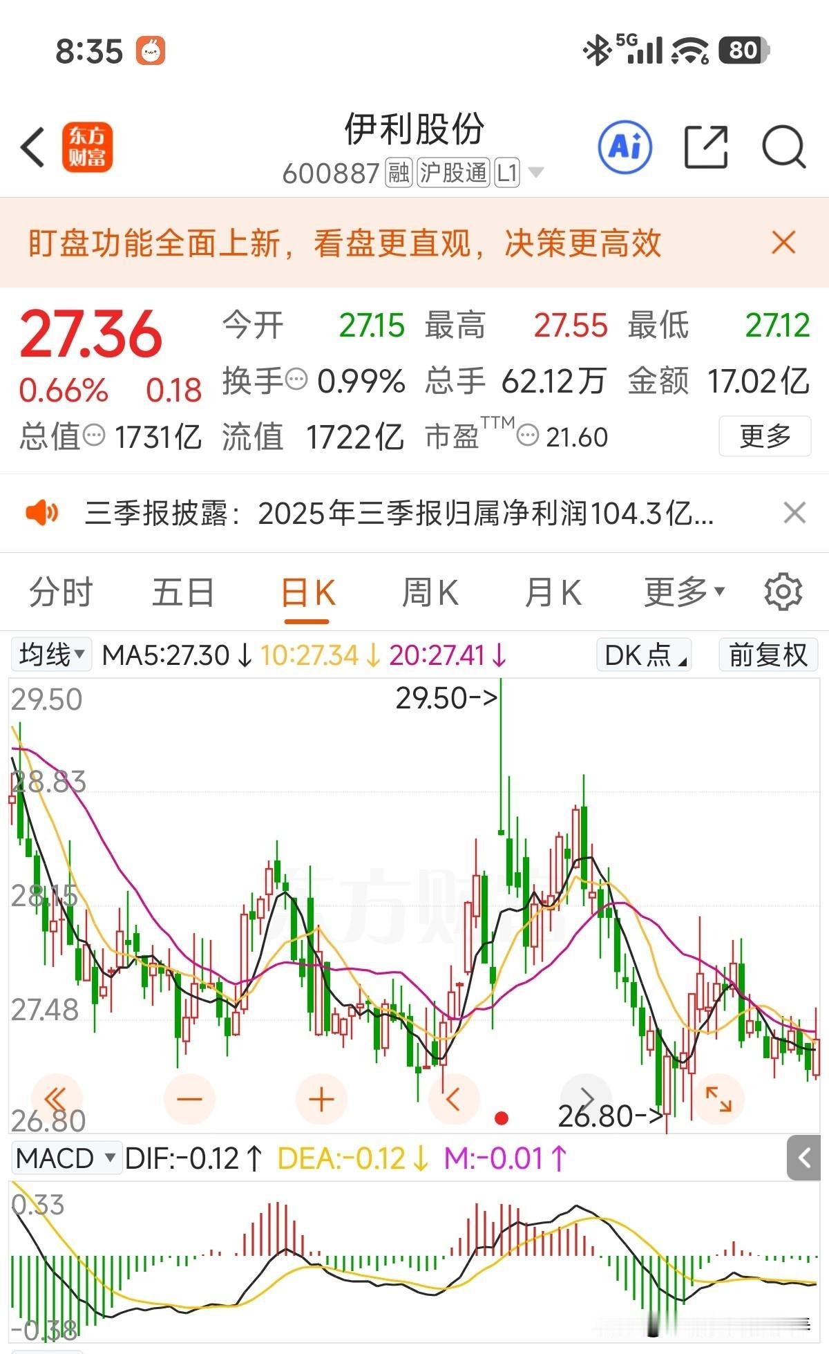 三季报来了,公司前三季度实现营业收入905.64亿元,同比增长1.71%;归母净利润104.26亿元,同比下滑4.07%;扣非归母净利润101.03亿元,同比增长18.73%。 扣非净利润再创新高,另外投资者回报方面,首次发放中期分红,相当良心!管理层这份三季报➕分红方案值得点赞!