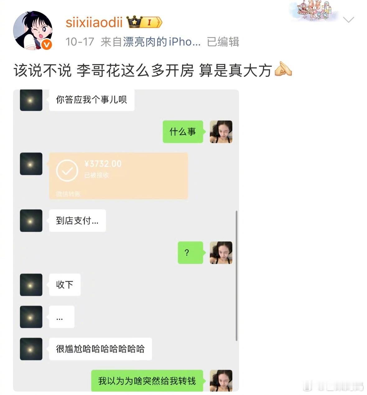 李汶翰前女友喊话李云迪司晓迪 我真的很讨厌李云迪了谁还记得司晓迪之前就喊话过李汶翰啊,有点看不懂今天这个🍉了,司晓迪要锤李云迪,又发李汶翰的“到店支付”转账是啥意思,起到一个承上启下的作用吗[傻眼]