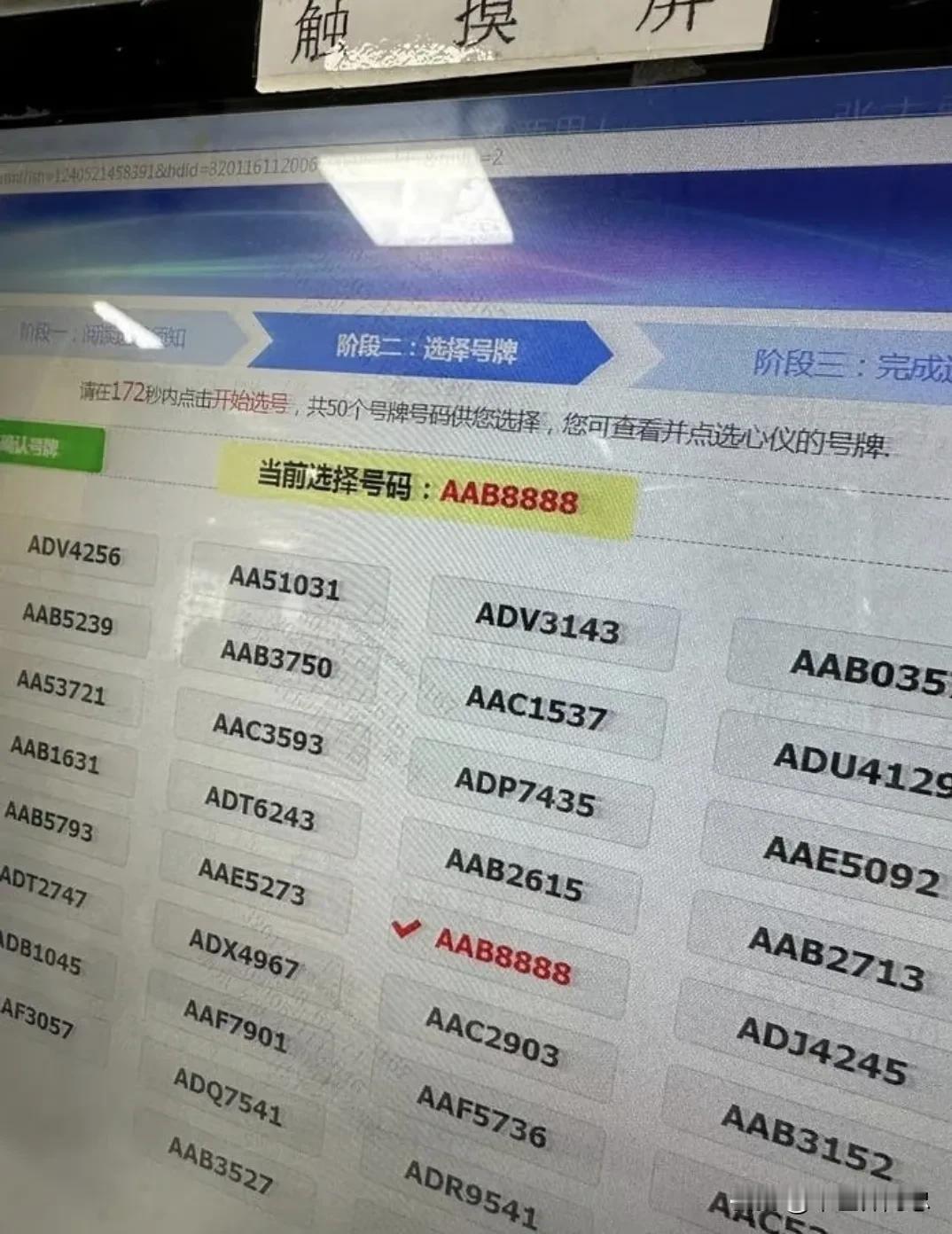 保持平常的心态也有意外的收获!车管所选车牌号码50选一!原本只是想着随随便便选一个看着顺眼的号码就行了,因为自己买的面包车也就几万块钱,所有并没有太在意。 可是当自选号码摇出来的那一刻,着实让我震惊到了,里面竟然藏着AAB8888这种极品靓号码。 这下着实让我犯难了,也有点纠结,心想几万块钱的面包车配这个车牌号码会不会太张扬呢?经过一番思考后,我还是决定拿下这个号码,因为这是印证我运气爆棚的象征,这种极品靓号码可遇不可求,拿下再说。你们认为我做的对吗?