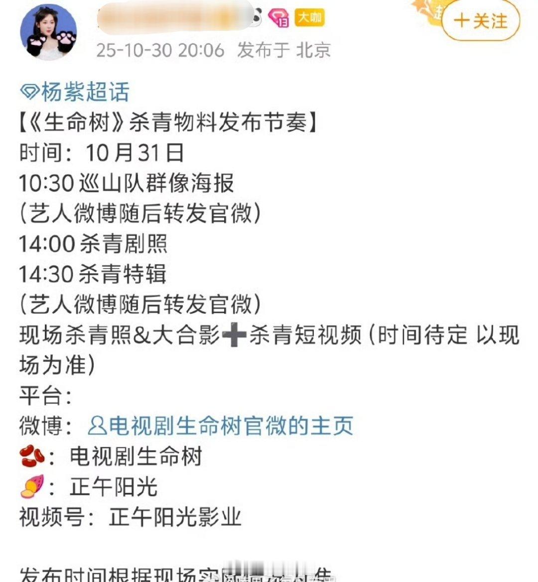 杨紫拍摄的大制作剧《生命树》终于要杀青了,明天就会发布《生命树》的杀青物料出来,