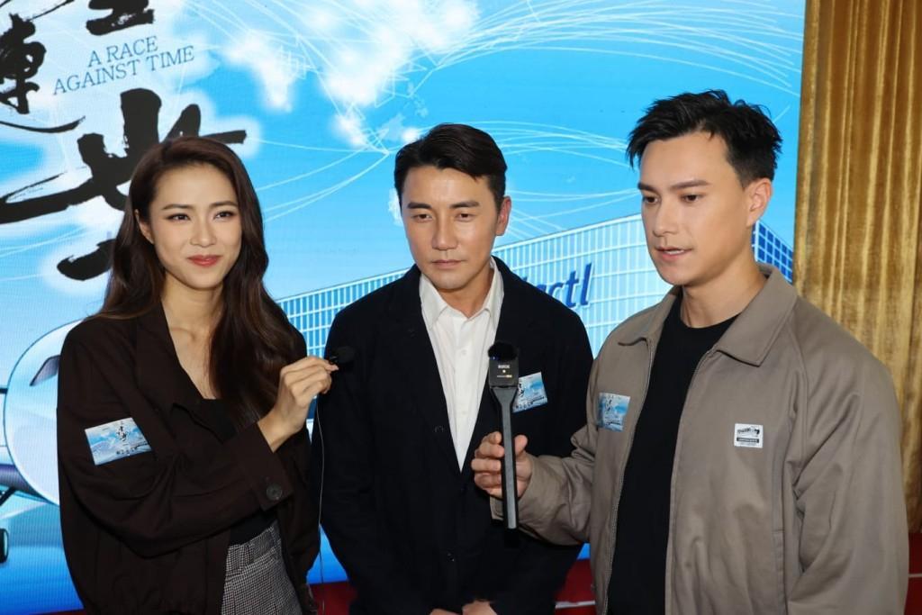 洪永城、朱敏瀚、刘颖旋今日(29日)出席于机场举行的台庆综艺《空运世一》记者会。洪永城喜言有靓女一同拍摄很幸福,朱敏瀚却笑指首次去法国便献给洪永城,"一点也不幸福。"