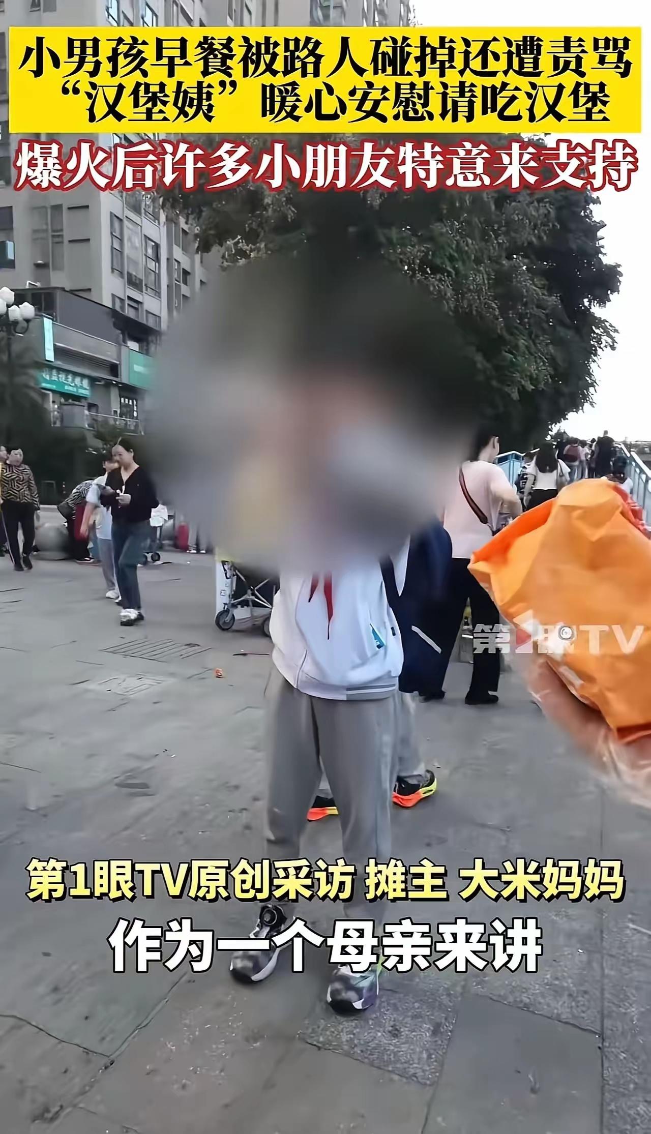 “好人有好报!”贵阳,小男孩上学途中早餐被路人碰掉,对方不仅没道歉,反而骂小男孩没长眼丨睛。小男孩很委屈,忍不住哭了起来。旁边经营汉堡的摊主看到后,一番举动让她得到了善报! 贵阳早高峰,8岁小宇的豆浆被急停的路人撞飞,那人一句“没长眼啊”甩锅就走。小宇攥着空袋憋泪,这一幕被汉堡摊主李薇拍下。她没废话,起锅、煎蛋、抹酱,1分钟端出“豪华版”猪柳堡递过去:“弟弟别哭,你的早饭我承包!” 阿姨给他汉堡,小男孩擦掉眼泪抬头看了看,是卖汉堡的阿姨,卖汉堡阿姨笑着说:快拿着吃完上课去吧。小男孩心里暖暖的,一蹦一跳朝学校走去。 第二天小男孩来汉堡姨店说:我每天都到您这买早餐,而小男孩还带着同学一起到汉堡姨店买早餐,汉堡店打上“良心商家”的标签收益天天往上增。此时,本地企业也送来“爱心早餐基金”,让她每天免费送出10份给环卫工;小宇妈妈更是拉横幅站店门口:“好人有好报,生意必须火!” 李薇却笑着摆摆手:“我不是图回报,只是不想让孩子觉得世界只有冷漠。”她把爆红后的第一笔收入买了200份保温袋,写上“天冷,吃点热的”,凌晨5点送给路口执勤的交警。 别再把“好人没好报”挂嘴边,善良从来不是亏本买卖,只是利息到账慢一点。今晚下班,去光顾一下那家小店,或者顺手把感谢挂在嘴边——你的0.1秒善意,可能就是别人的一整天暖炉。贵阳小男孩 汉堡姨