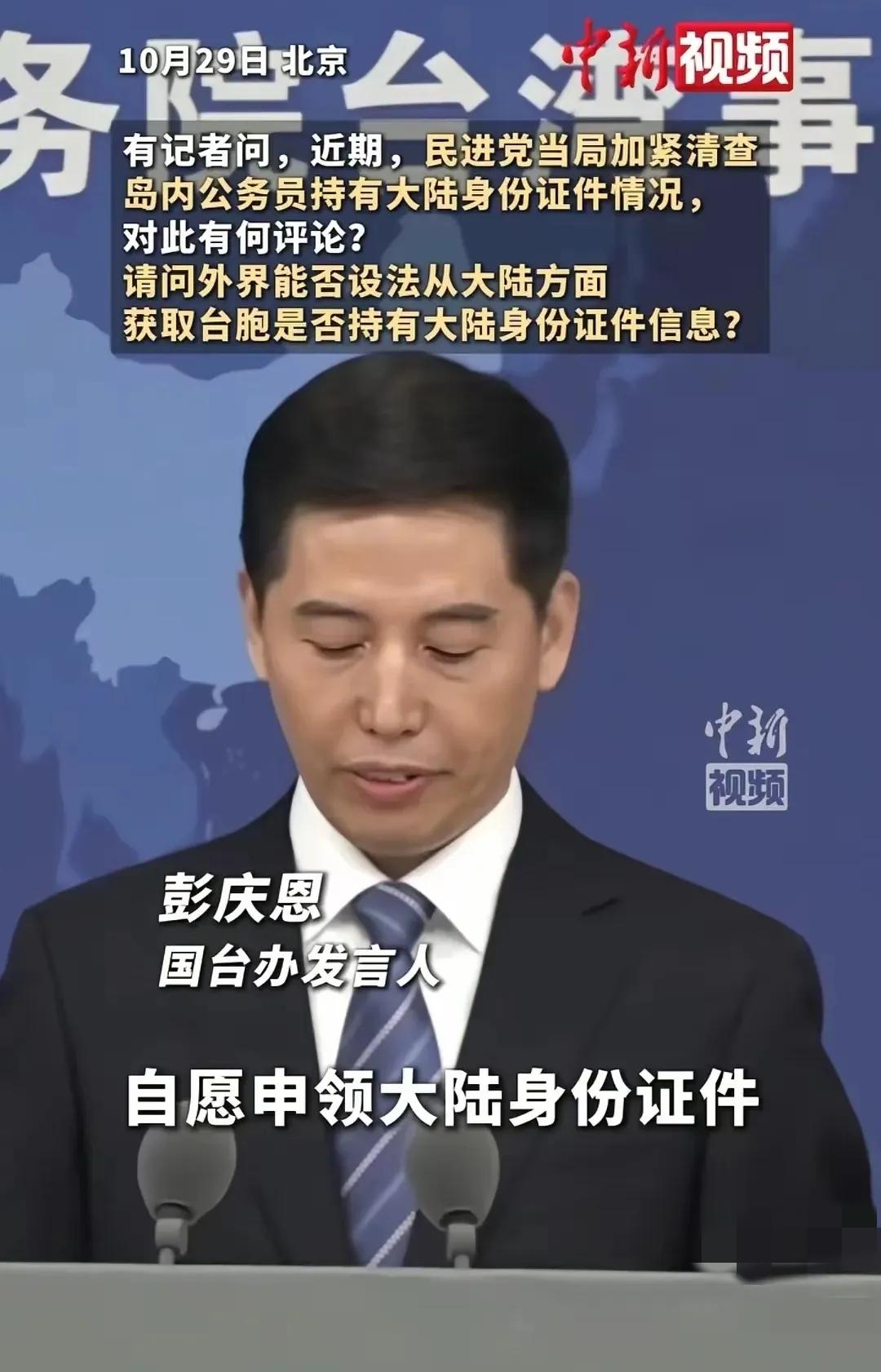 台湾急了!台湾急了! 国台办发言人最新发言: 台湾居民自愿申领大陆身份证,使其享